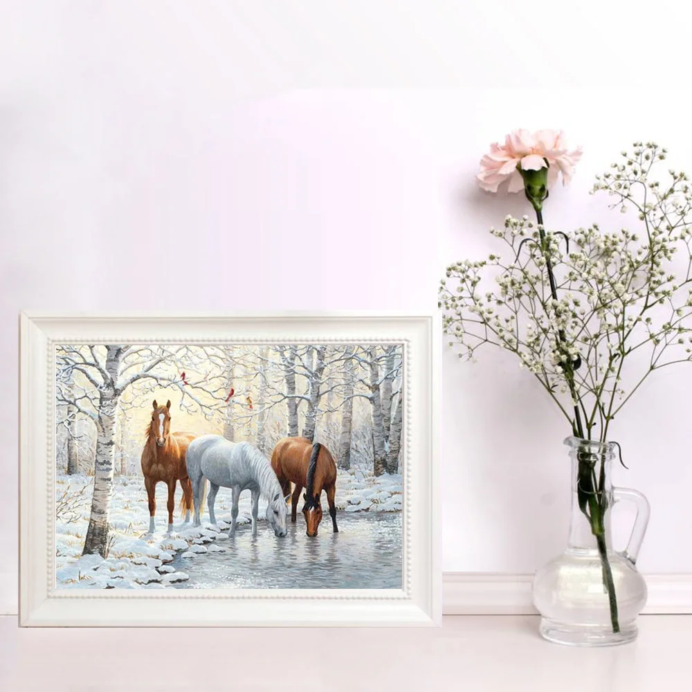 Алмазная живопись HUACAN, животное с лошадью, полная вышивка, квадратнаяКруглая Мозаика, зимний Снежный пейзаж, домашний декор