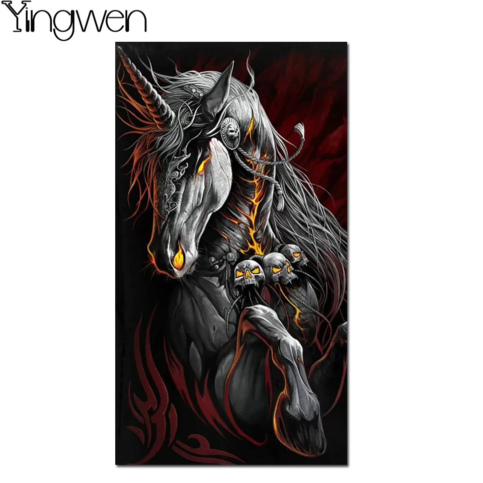 5D DIY Алмазная картина череп лошадь мозаика огненный Единорог стразы рисунок картина Алмазная вышивка украшение для дома Искусство ремесло