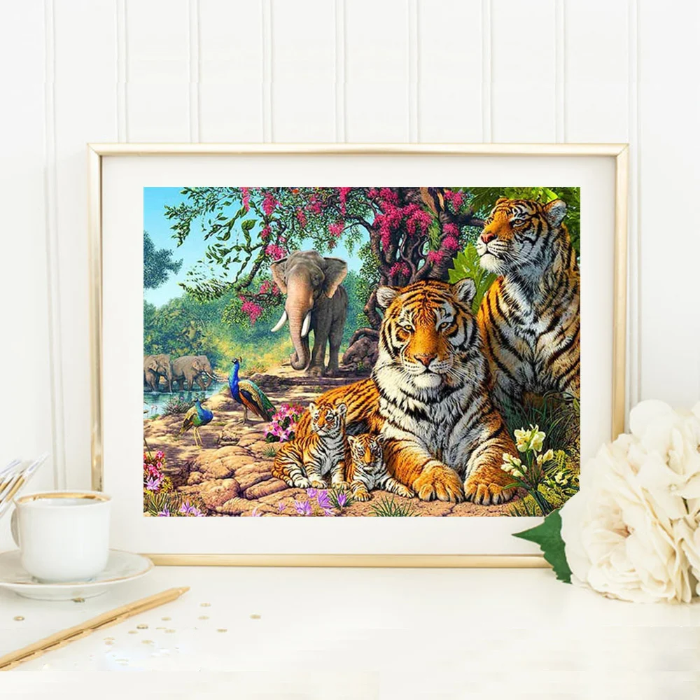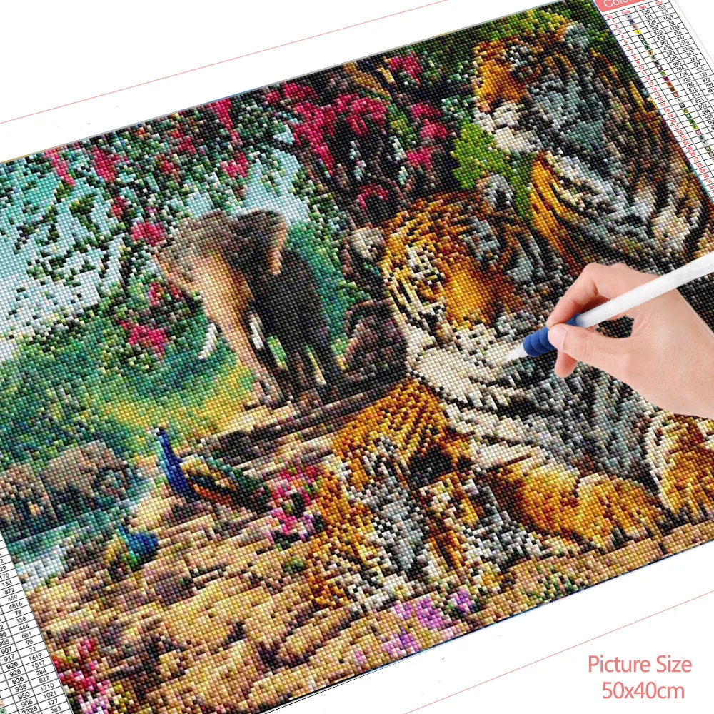 Алмазная 5d-картина HUACAN сделай сам, Животное тигра, домашний декор, мозаика с вышивкой из натурального леса