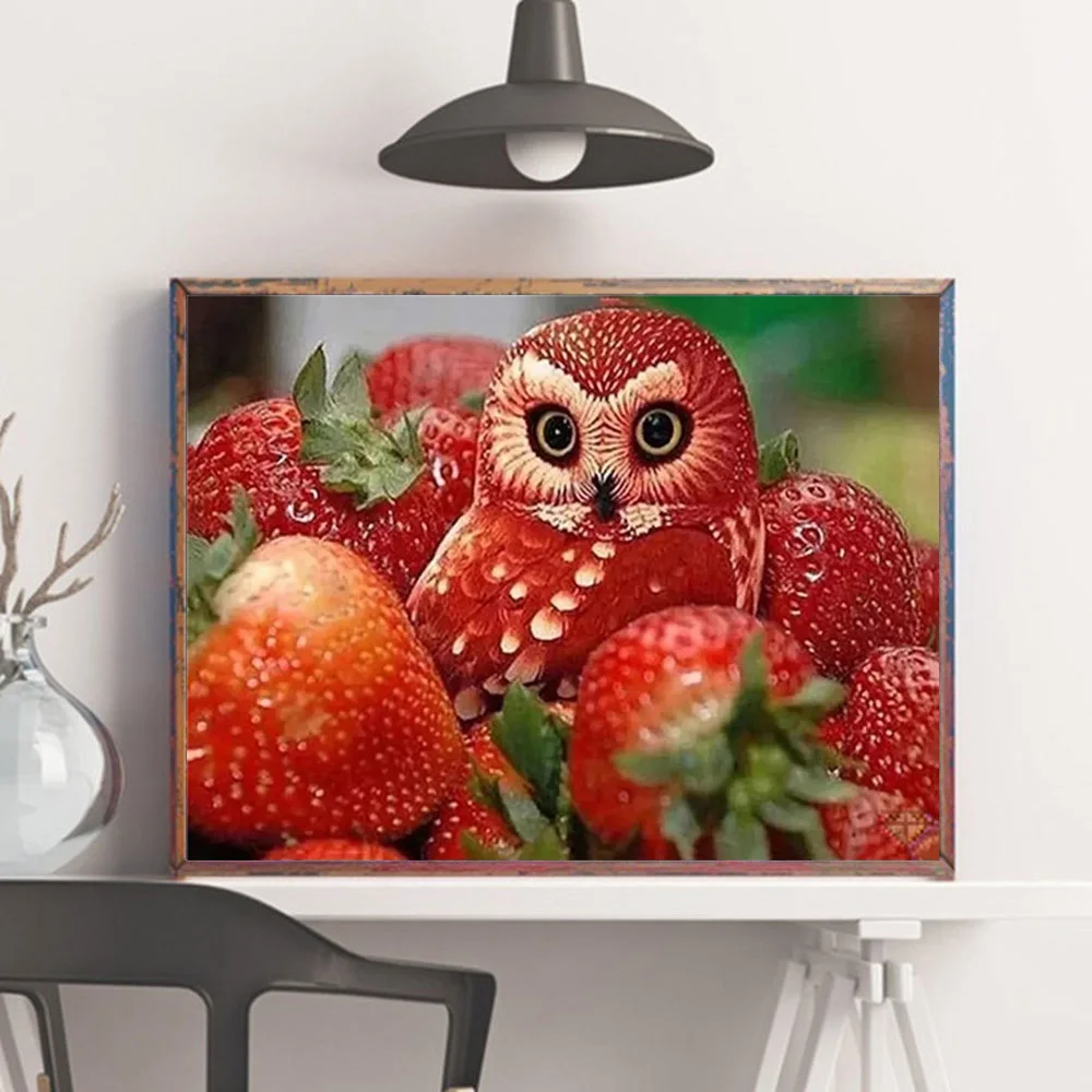 Алмазная мозаика HUACAN 5D сделай сам, животное в виде совы, алмазная живопись, клубника, фрукты, полный набор для вышивки, настенные картины