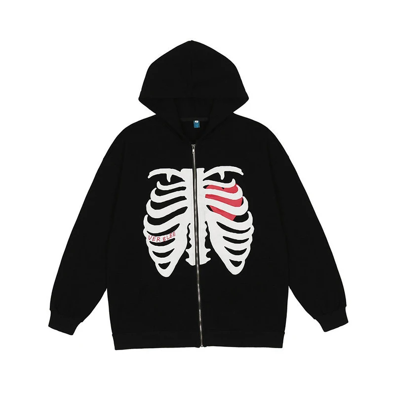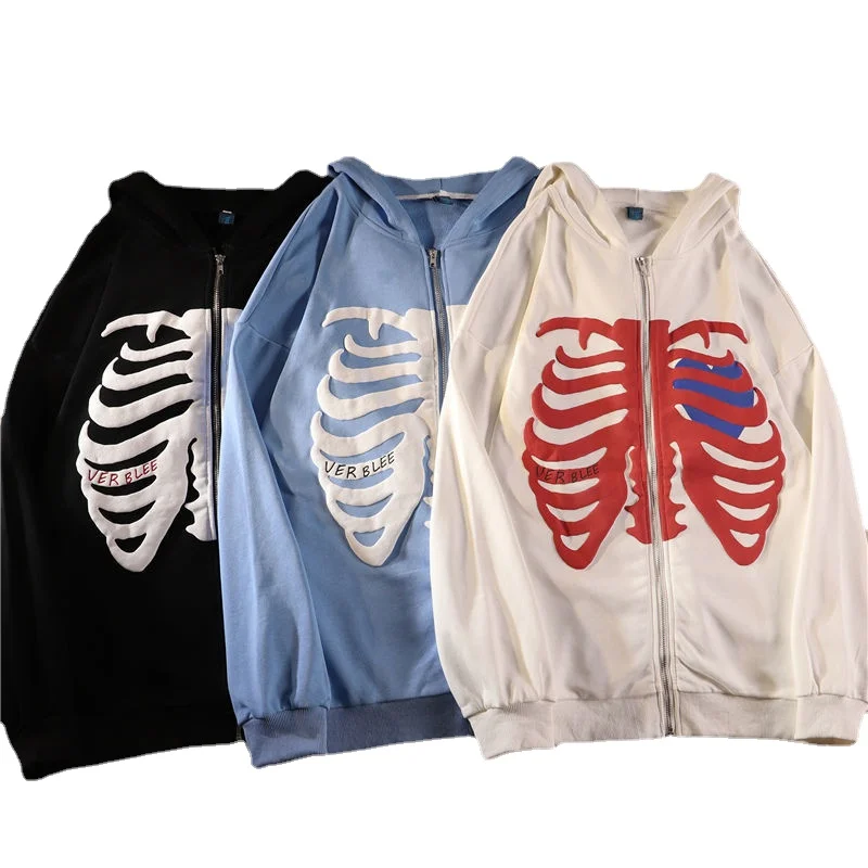 Американская Мода, лидер продаж, толстовка с капюшоном и принтом скелета, с длинным рукавом, на молнии, для мужчин и женщин, свободная уличная одежда, пуловер Y2K