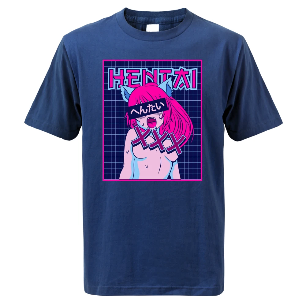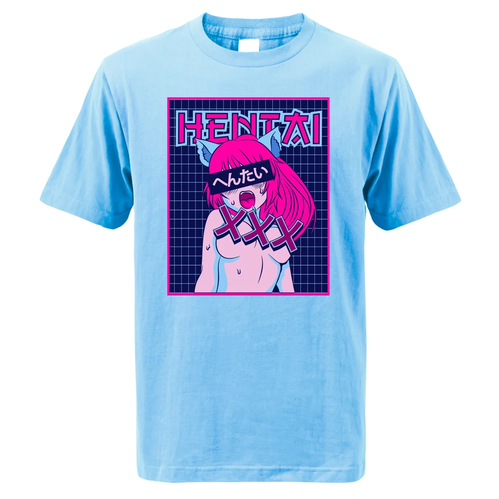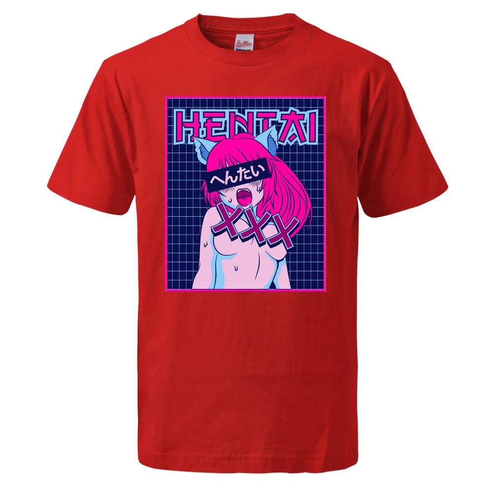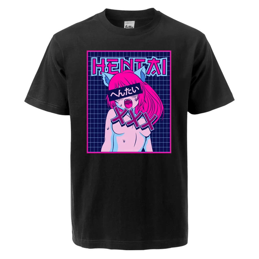 Летняя мужская модная футболка Hentai Girl Vaporwave с аниме для девушек, простая и крутая уличная одежда, мужская футболка большого размера