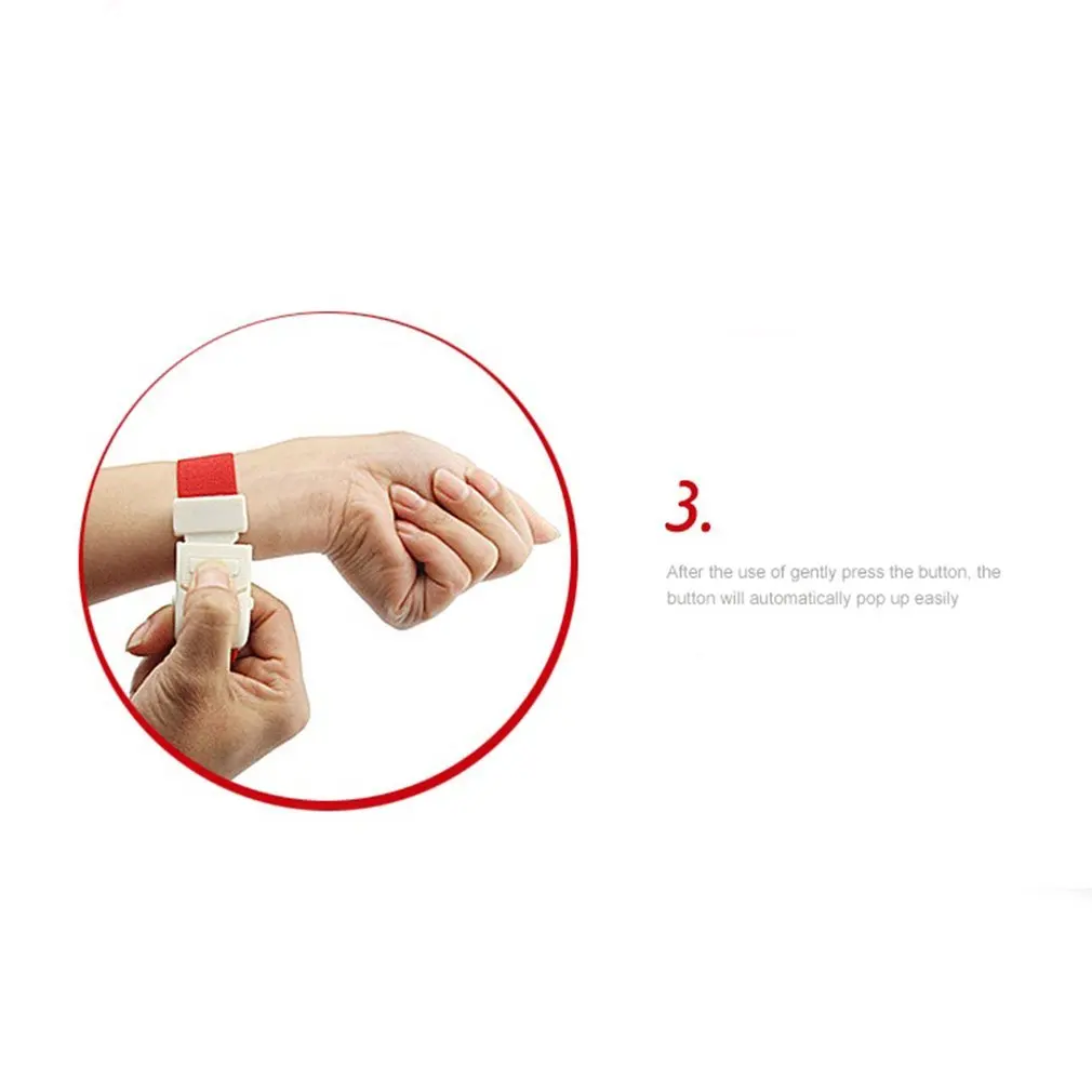 Особенности: Изготовлен из высококачественного материала, он прочный и долговечный в течение длительного времени. Имеет твердый пластиковый улов с пластиковой пряжкой, которая позволяет быстро отпустить с прикосновением пальца. Используется для процесса сбора образцов венозной крови или внутривенного инфузии, переливания, венипунктуры крови. Широко используется в медицине, также подходит для наружного использования в чрезвычайных ситуациях. Эластичная лента регулируется, чтобы соответствовать большинству размеров запястья.