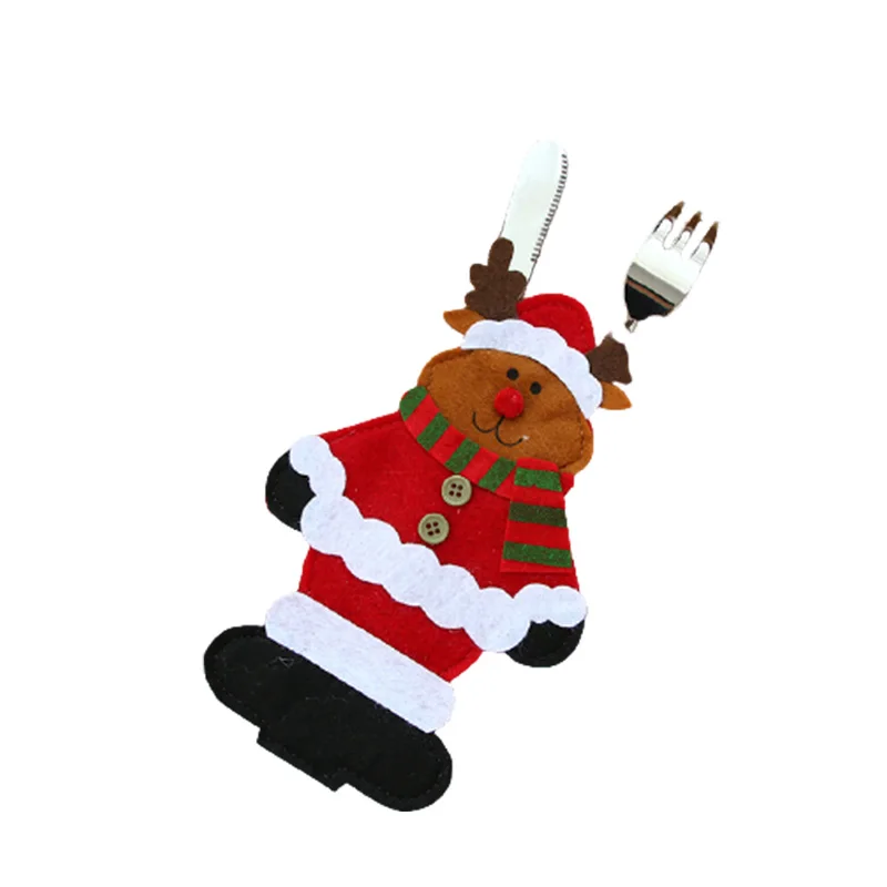 Рождественский чехол для столовых приборов, милый тканевый чехол в форме Санта-Клауса, снеговика, лося для кухни, столовой посуды, ножа, вилки вечерние праздничный Декор