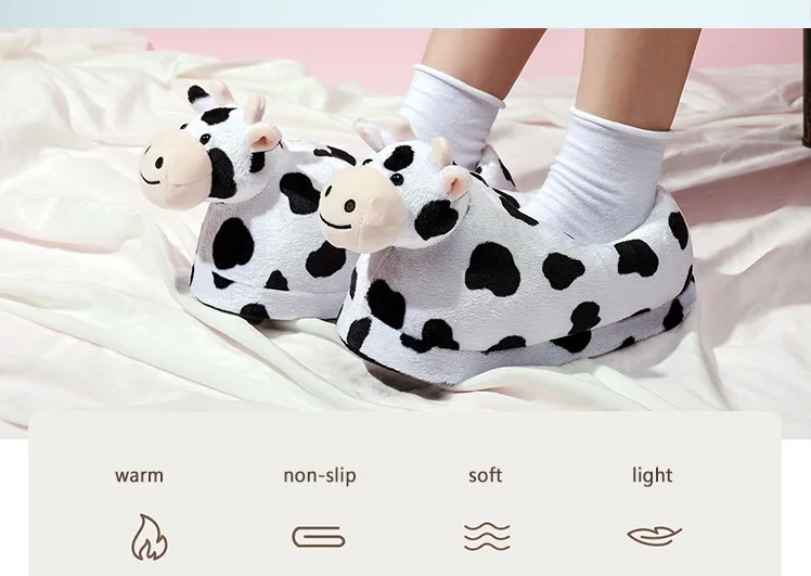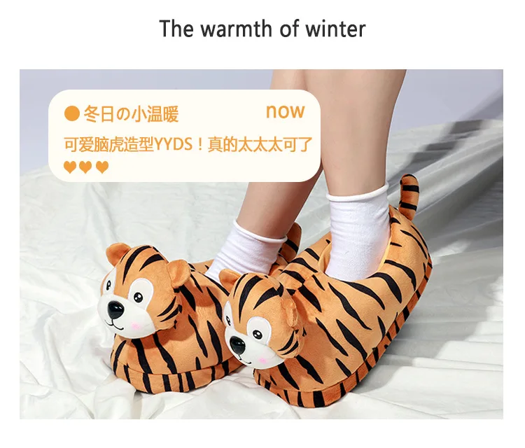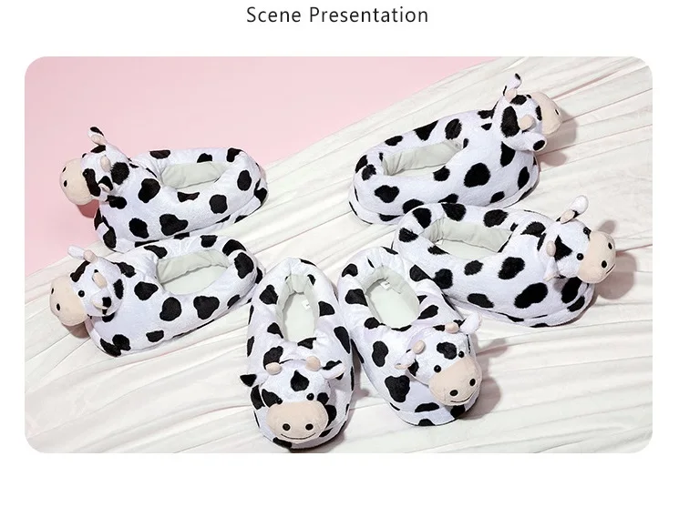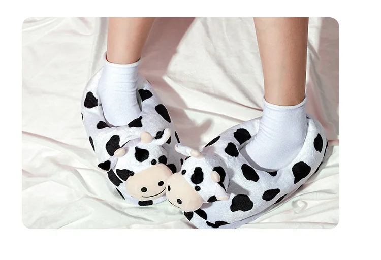 Зимние тапочки Kawaii Tiger Desginer, женские домашние тапочки для комнаты, женские полуботинки, 3D Животные, корова, дизайнерская домашняя обувь