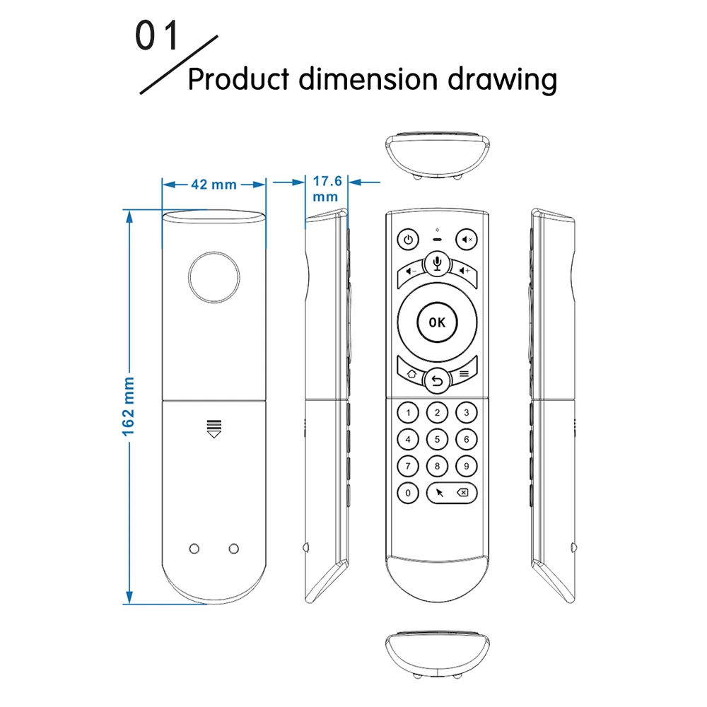 Нажмите кнопку «уменьшить громкость» + «увеличить громкость вместе», чтобы выключить подсветку, чтобы снова включить подсветку.Примечание 1: только клавиша питания может быть запрограммирована для ИК-обучения.Примечание 2: Эта воздушная мышь может быть несовместима с некоторыми смарт-телевизорами, потому что третий-вечерние USB ключ заблокирован. Вы должны подтвердить, что ваш смарт-телевизор может распознавать вечерние usb-ключ и поддерживать другой пульт дистанционного управления, за исключением оригинального пульта ДУ.Если вы используете его на android tv box. Пожалуйста, установите «Google assitant''1. Это Беспроводная воздушная мышь со встроенным гироскопом axisИ датчик гравитационного ускорения и верный голосовой ввод;Он может выполнять функции традиционного пульта дистанционного управления,Компьютерная мышь и игровой контроллер движения на платформе android.Микро-приемник Plug and play совместим с персональным компьютером,Проектор, ТВ-бокс, домашний кинотеатр персональный компьютер и т. Д.2. Удерживая воздушную мышь и поворачивая запястьеПреобразуется в движение курсора по экрануИ позволяет управлять компьютером,Проектор и другое развлекательное оборудование на расстоянии.3. Эргономика воздушной мыши заменит стационарную компьютерную мышь и инфракрасныйКнопочный пульт дистанционного управления обеспечивает удобство управления компьютеромИ Телевизор с позиции, которая наиболее удобна для вас.Спецификация:1. 2,4 GHz RF air mouse с голосовым управлением2. Микрофон 16 кГц и голосовой вход3. 6-Axis (3-Gyro + 3-Gsensor)4. ИК-обучение (можно запрограммировать только кнопку питания)