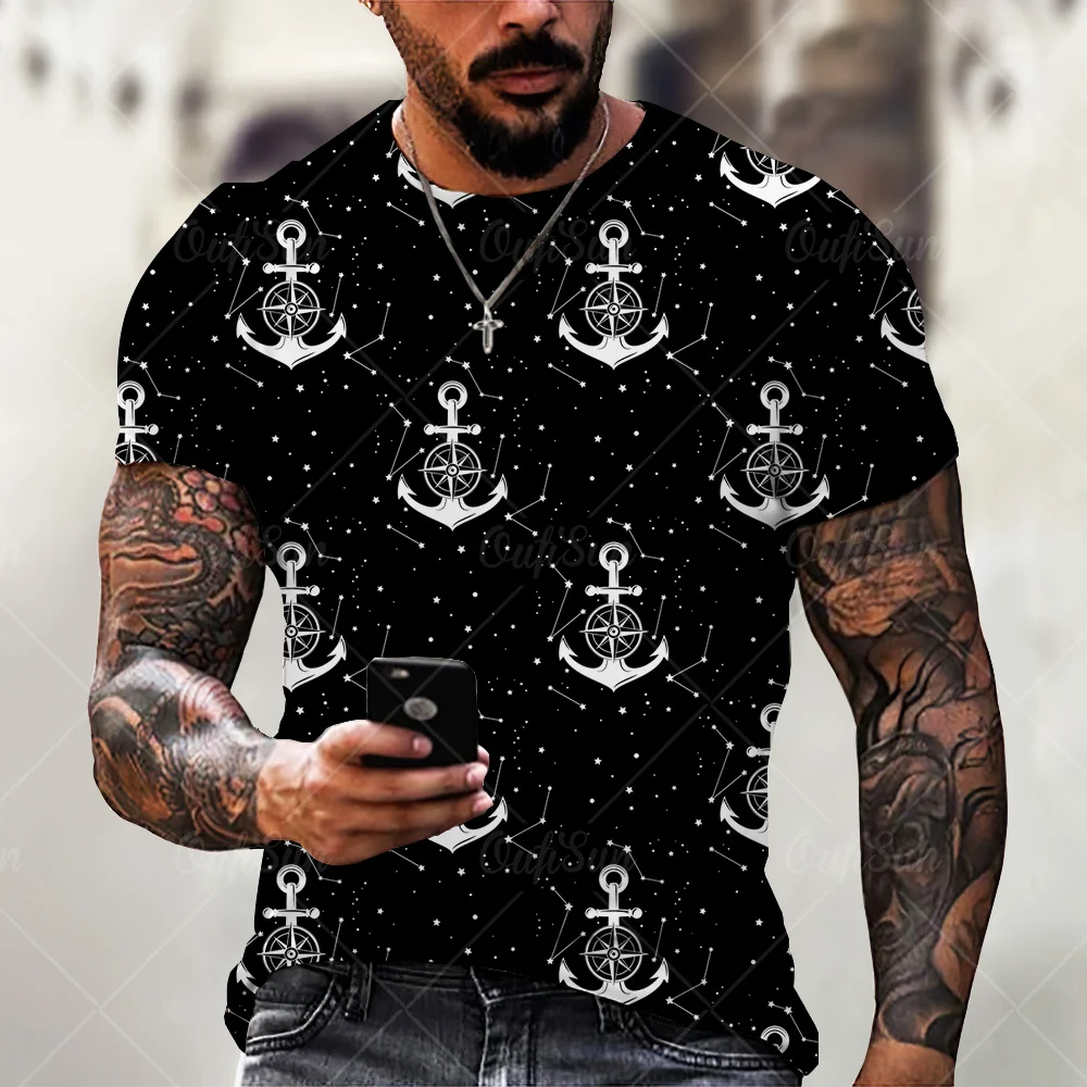 Мужской пуловер с 3D-принтом якоря в стиле Харадзюку, короткий рукав, графический стиль, в стиле панк, уличная одежда, свободная повседневная спортивная футболка, лето