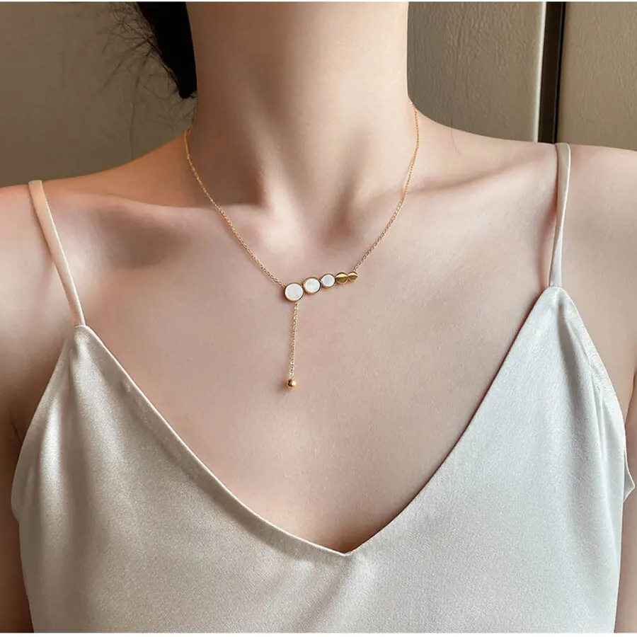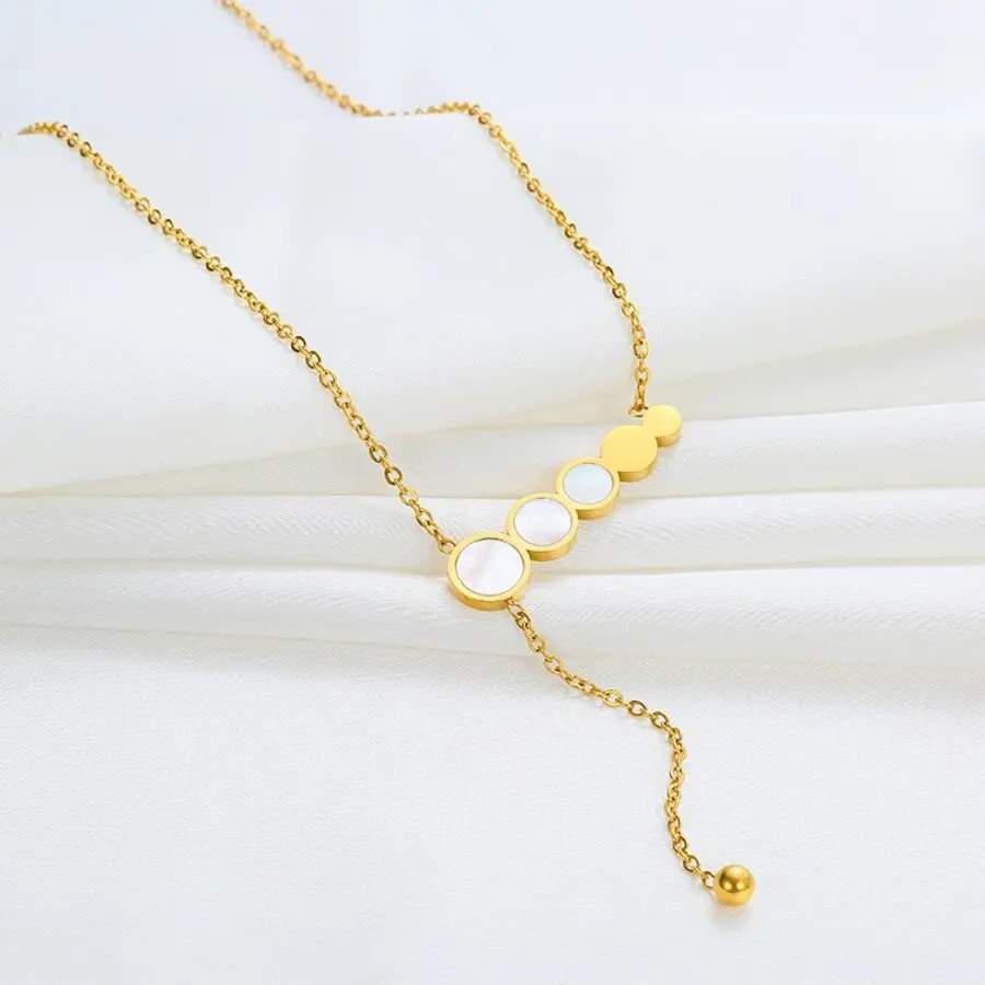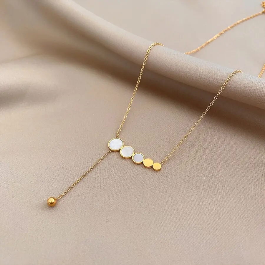 Информация о продукте Женское Ожерелье Происхождение: КитайМатериал ожерелья: титановая сталь + позолота + оболочкаРазмер подвески: 3 смОжерелье полная длина: 40 + 6 см удлинительТип цепи: замок с цепочкойПосылка: индивидуальная упаковка