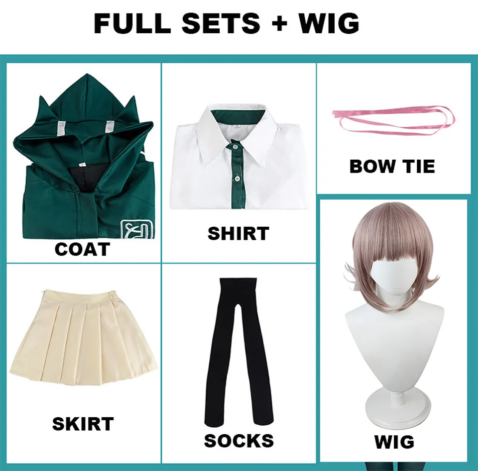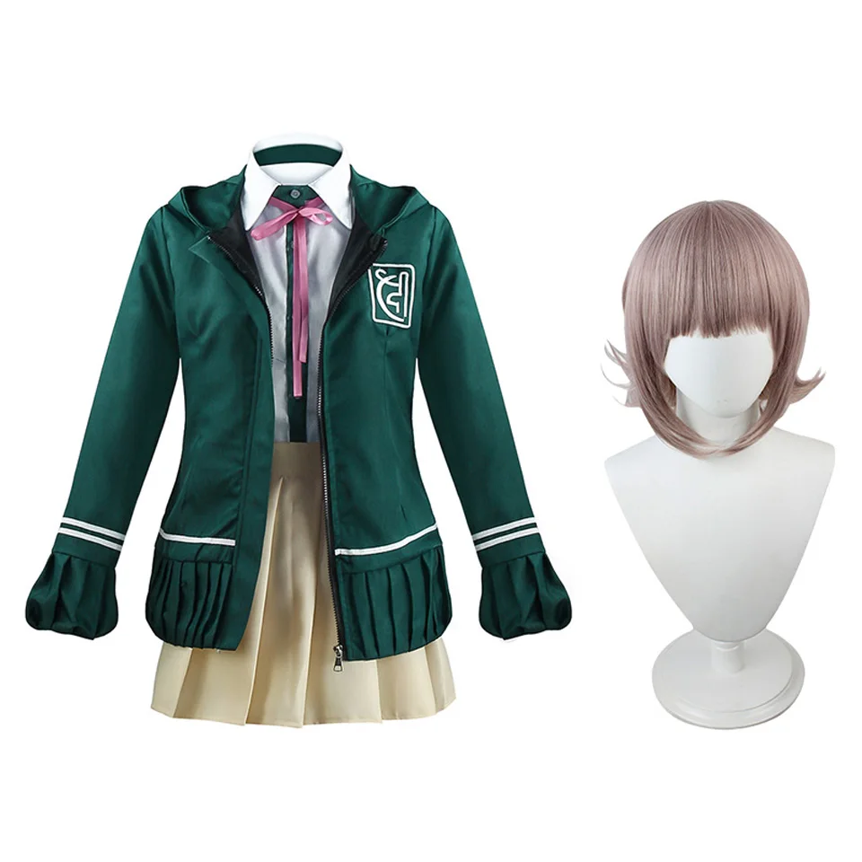 Костюм для косплея школьников, униформа для учащихся средней школы из аниме данганронпа, Нанами и Чиаки, жакет с длинными рукавами, короткая юбка, юбка и парик Оли