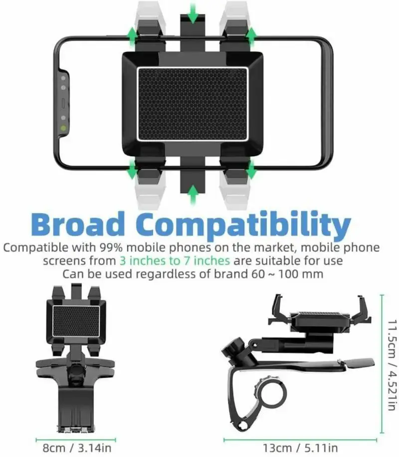 4. Этот Автомобильный держатель телефона обновлен, чтобы включить функции самых популярных автомобильных держателей телефона. Нижняя стопа регулируется, что делает кнопку питания и громкости вашего телефона никогда не сдавливается зажимом и позволяет крепление телефона для автомобиля подходит для всех размеров телефона и большинства толстых чехлов.