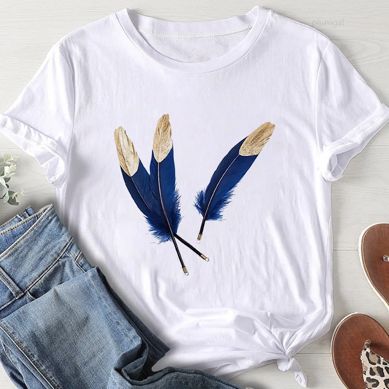 Женская футболка с принтом акварельных перьев, в стиле Харадзюку