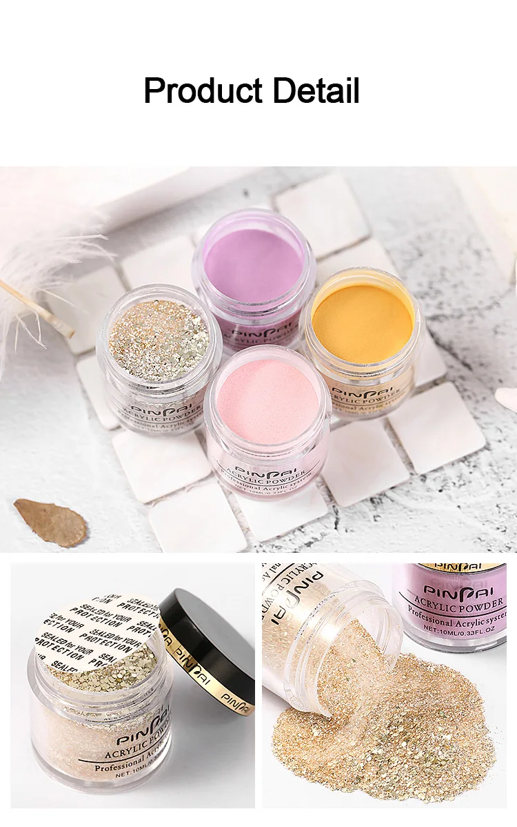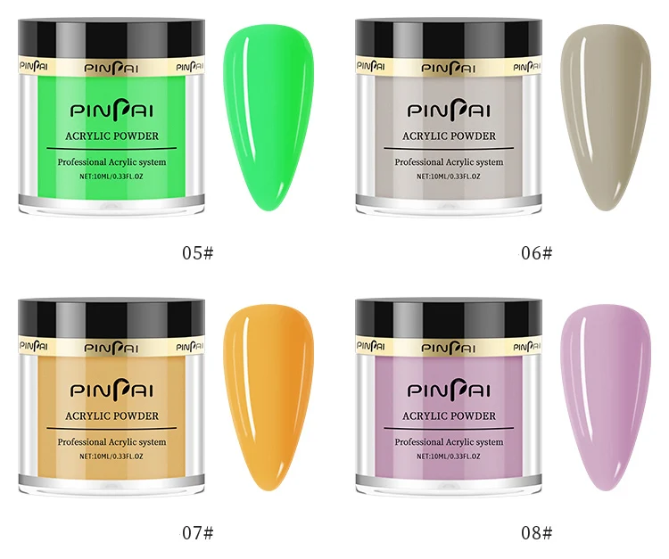 Акриловая пудра для ногтей PinPai, яркий набор, блестящий впитывающий Пигментный Порошок для украшения ногтей, набор акриловых порошков