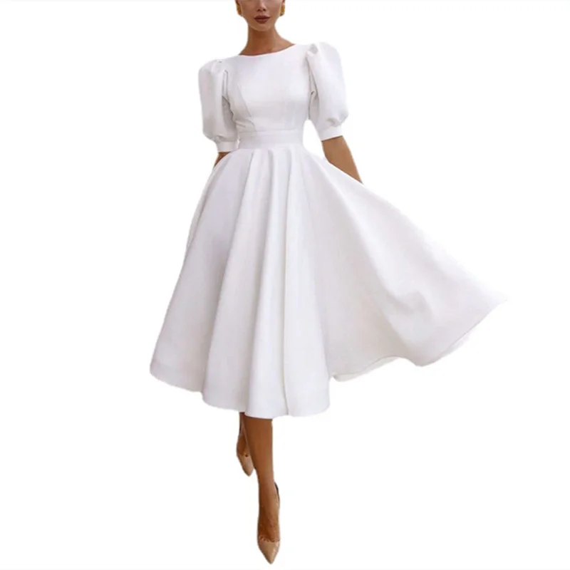Женские платья для вечерние, однотонные элегантные платья для женщин, милые темпераментные платья с круглым вырезом