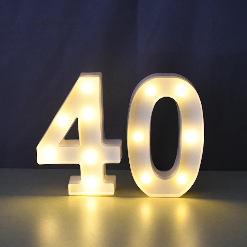 2 шт./лот, 18, 21, 30, 40, 40, с днем рождения, вечерние, украшения, цифровая лампа, 22 см, светодиодная гирлянда, ночник, реквизит для фотосессии, Юбилейный декор, вечерние товарыПрименение:Для использования в помещении, дома, окна магазина, Клубные, вечерние и праздничные украшенияСпецификация:Питание: 2XAA батареи (не входят в комплект)Материал: АБС + ППСветодиодный цвет освещения: теплый белыйПереключатель: Переключатель ВКЛ/ВЫКЛСрок службы: более 50000 часовЦвета знака: как на картинкеВысота изделия: 22 смПосылка включает в себя:2x светодиодный цифровой светильник(Аккумуляторы и другие предметы не входят в комплект)