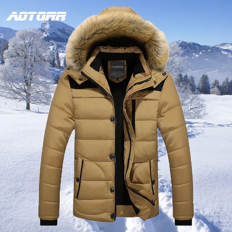 Мужская куртка с меховым воротником, с капюшоном, зимняя, плотная, ...