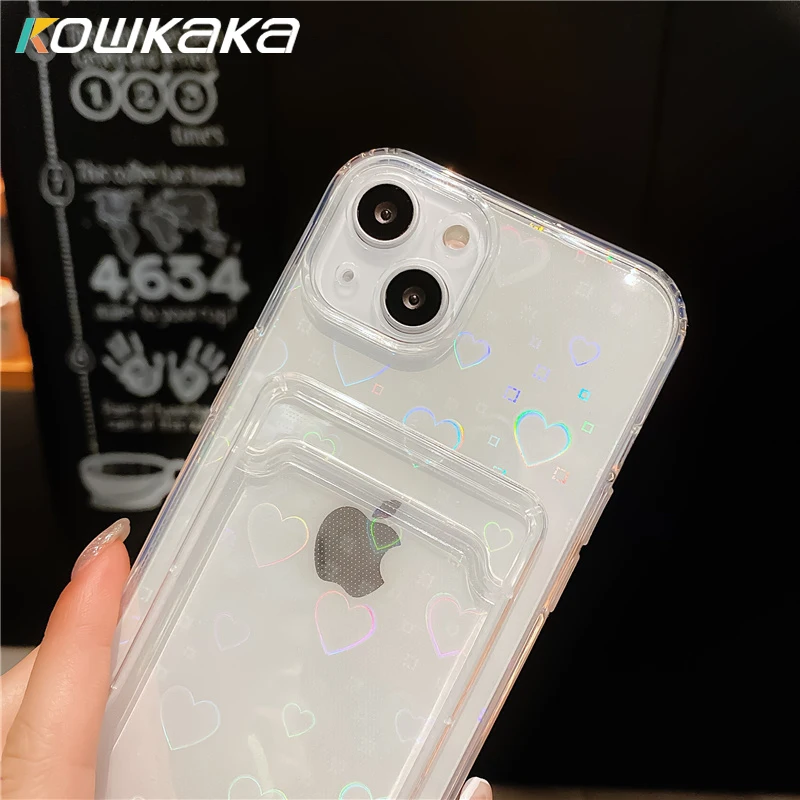 Прозрачный цветной лазерный кошелек с сердечками для IPhone 13, 12,...