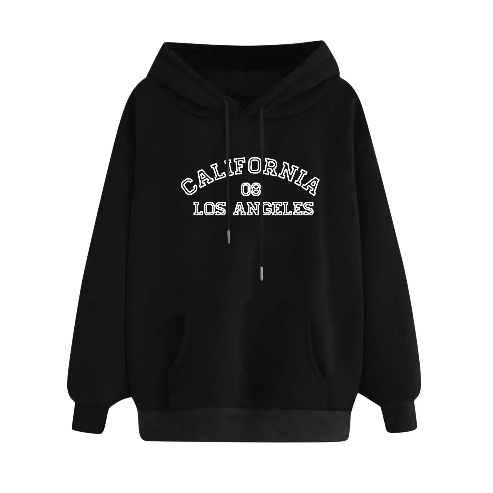 Женский свитшот с длинным рукавом, винтажный свитшот большого размера с принтом в виде букв Лос-Анджелеса, толстовка с капюшоном, осень 2021