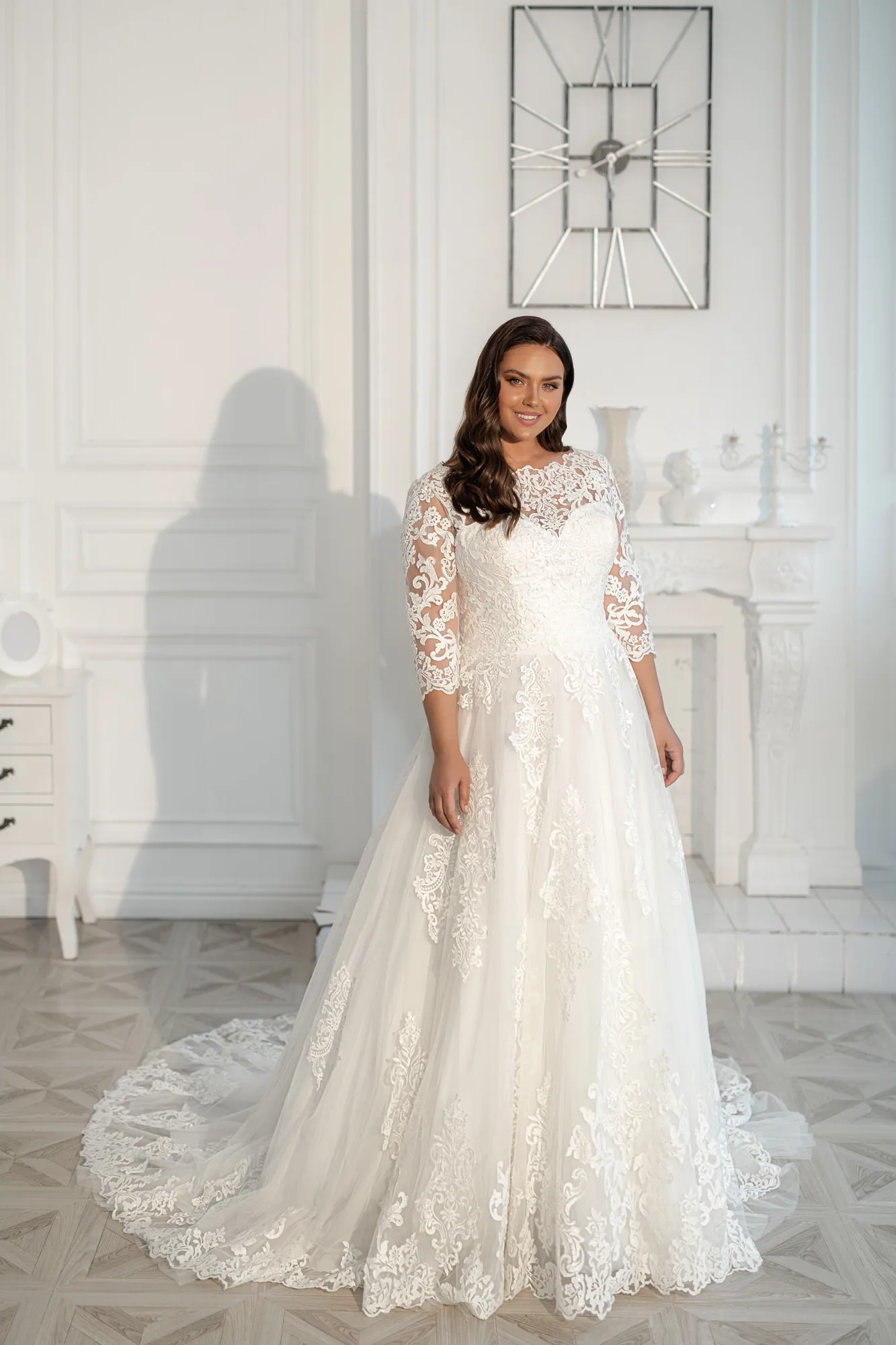 Кружевное бальное платье с аппликацией из органзы, с длинным рукавом