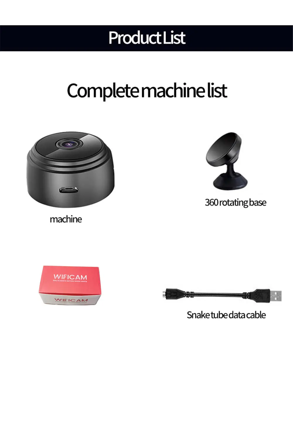 Feature1Motion detection, APP Alarm, ANight Vision, Magnetic Bracket