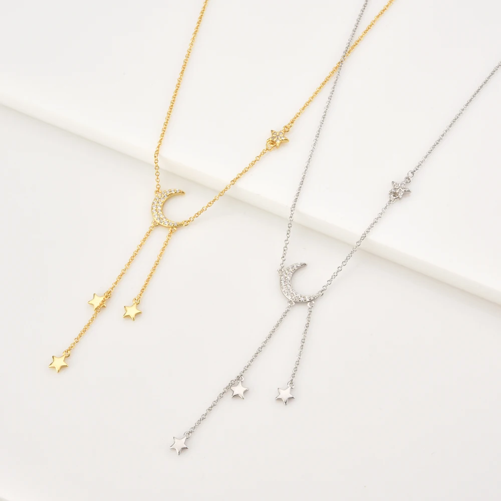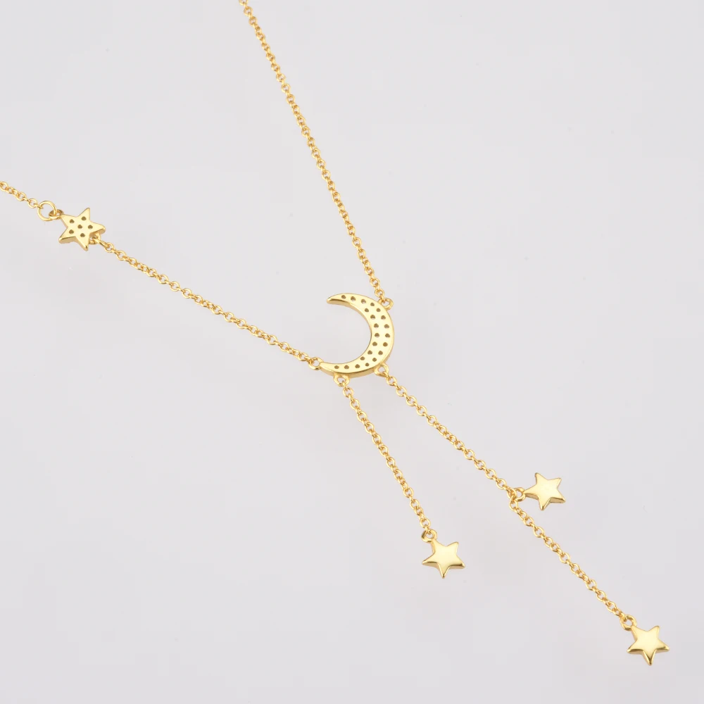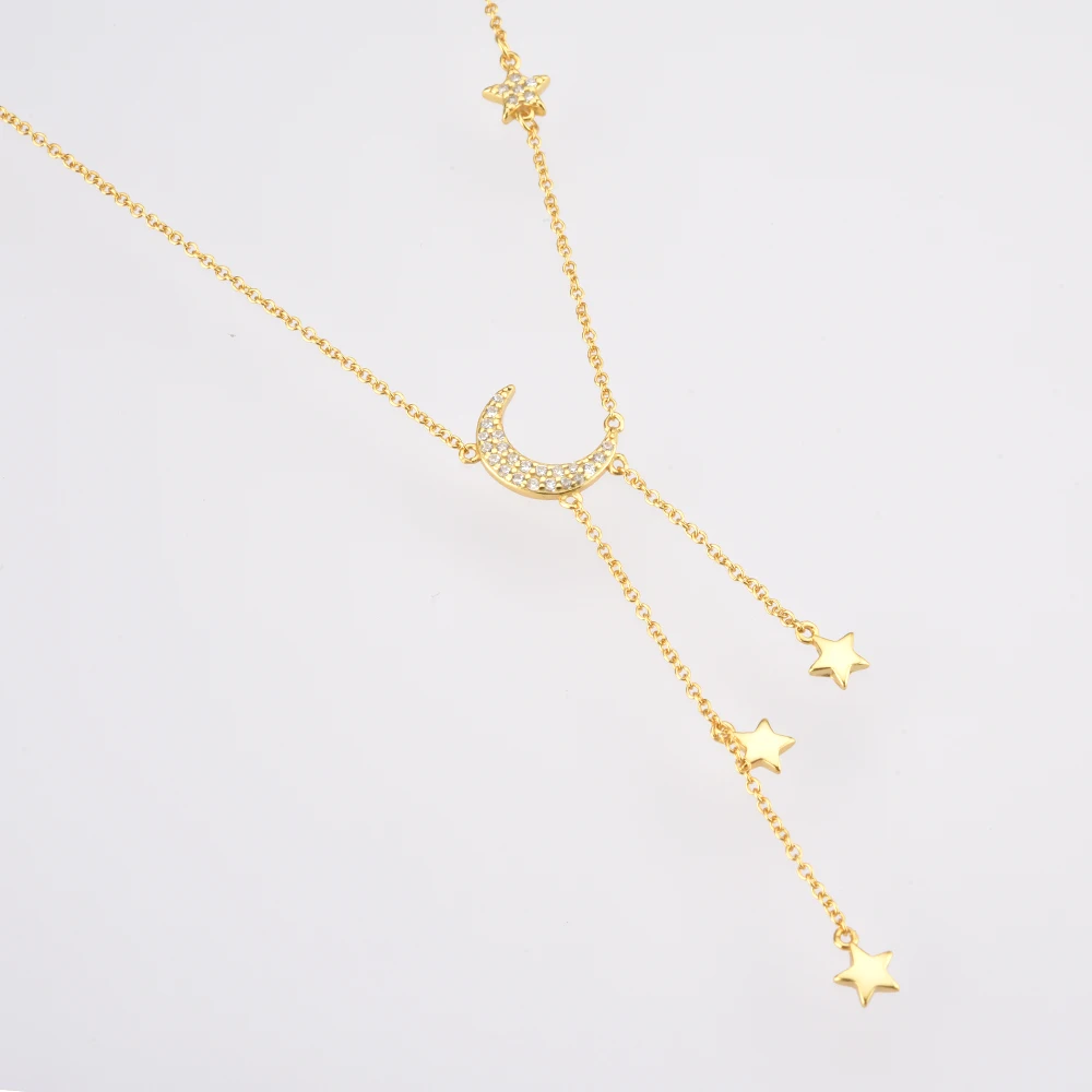 Цепочка ANDYWEN из стерлингового серебра 925 пробы с подвеской в виде Золотой Луны и звезды, длинная цепочка, Женская Роскошная бижутерия 2021, подарок на свадьбу с прозрачным цирконием