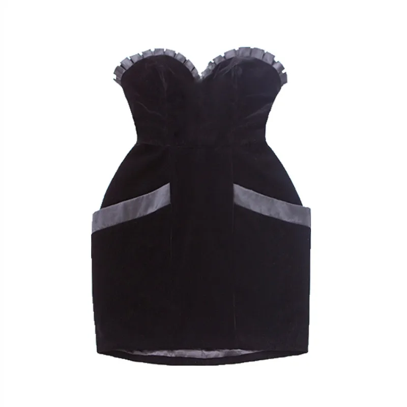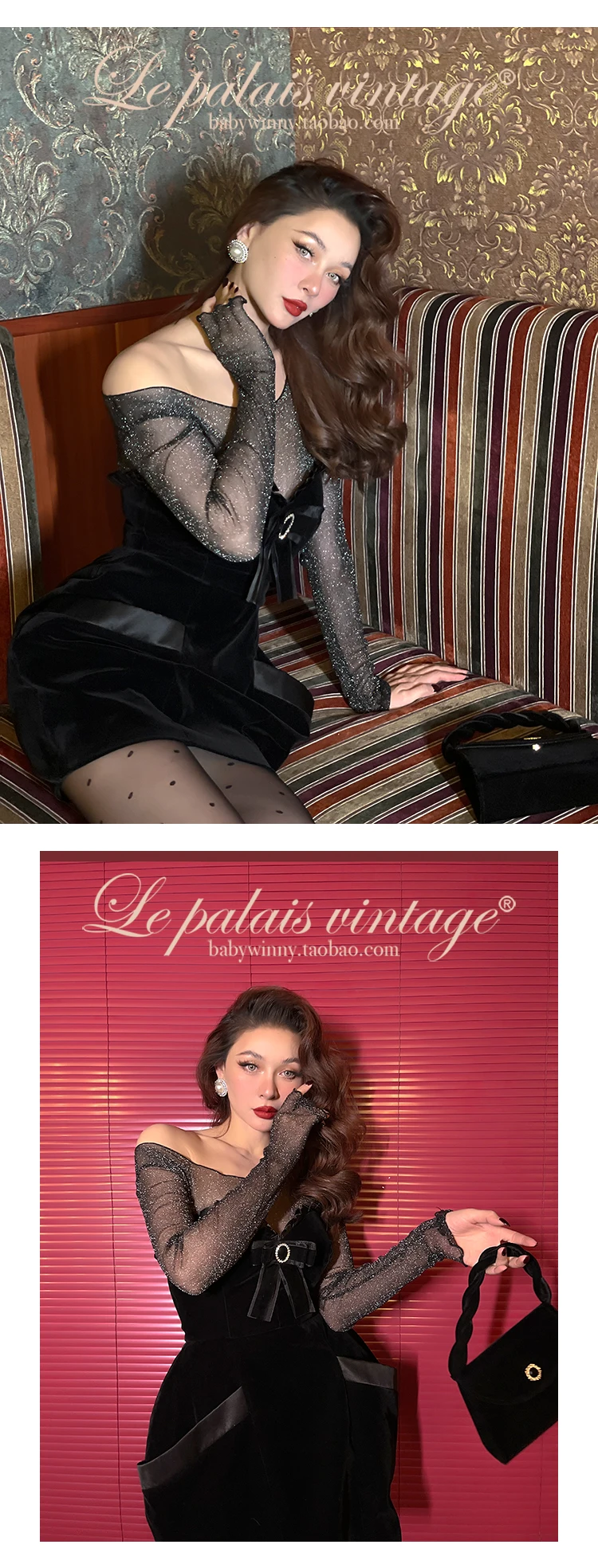 Le Palais винтажное 2021 Новое Оригинальное осенне-зимнее черное бархатное платье с оборками без бретелек с открытыми плечами сексуальные платья для женщин
