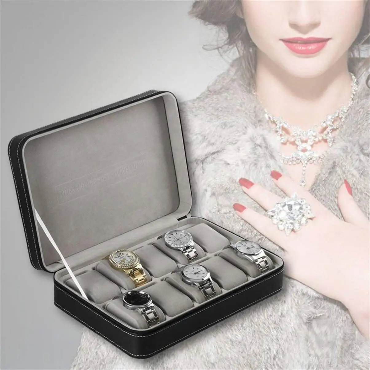 Портативный органайзер для часов, шкатулка из искусственной кожи на молнии в классическом стиле, 10 ячеек, многофункциональный чехол для дисплея браслета
