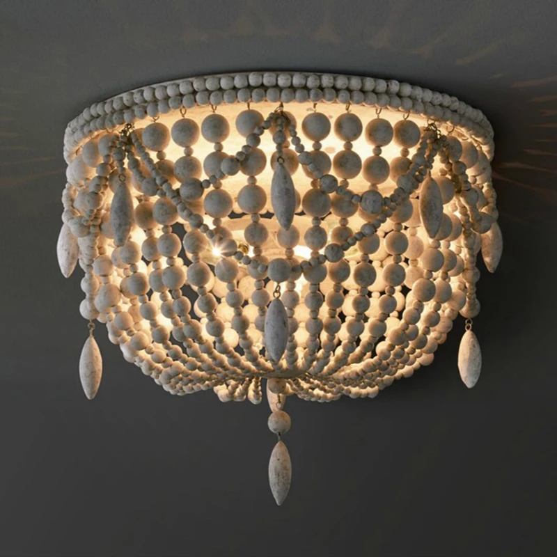 Промышленный деревянный подвесной ретро-светильник, винтажный белыйсерый деревянный подвесной светильник с бусинами, лампа в скандинавском стиле для спальни, столовой, лофта