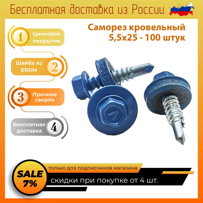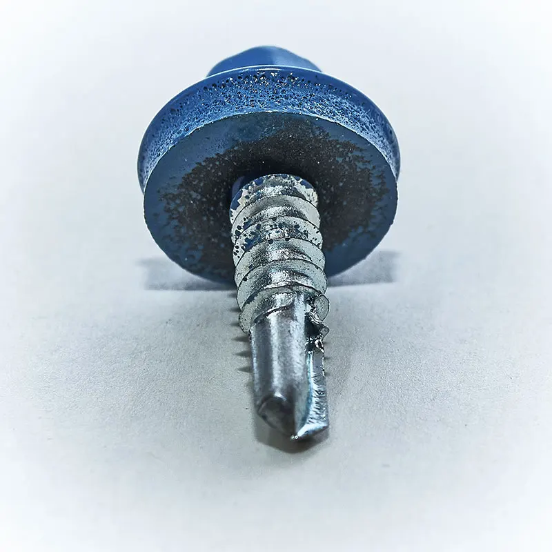 Саморез кровельный 5.5х25 синий окрашенный по RAL шестигранная головка со сверлом для крепления по дереву и металлу