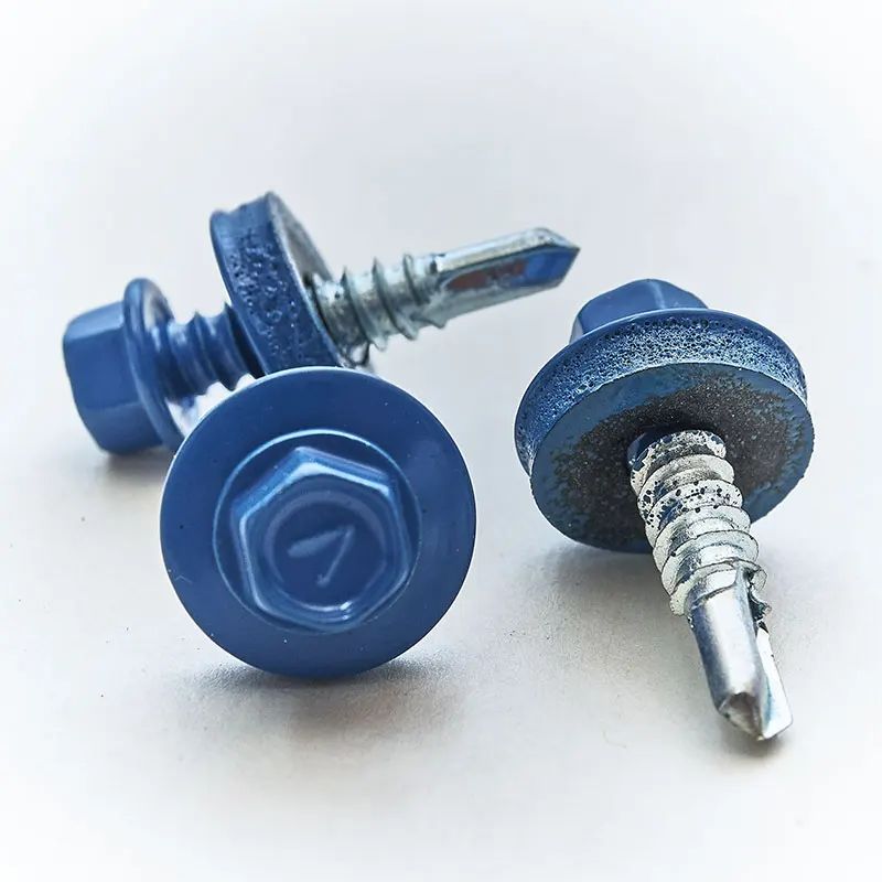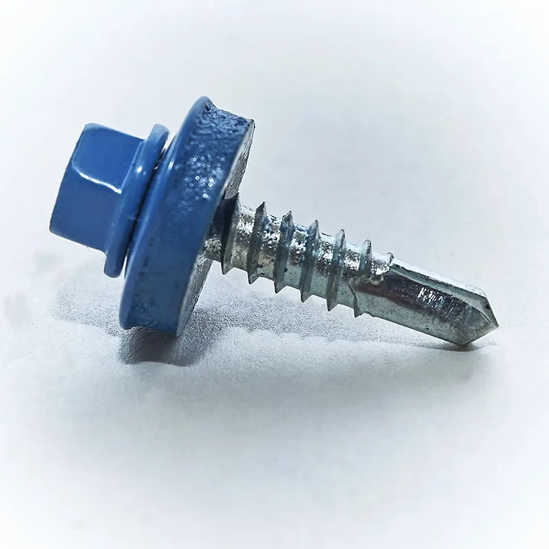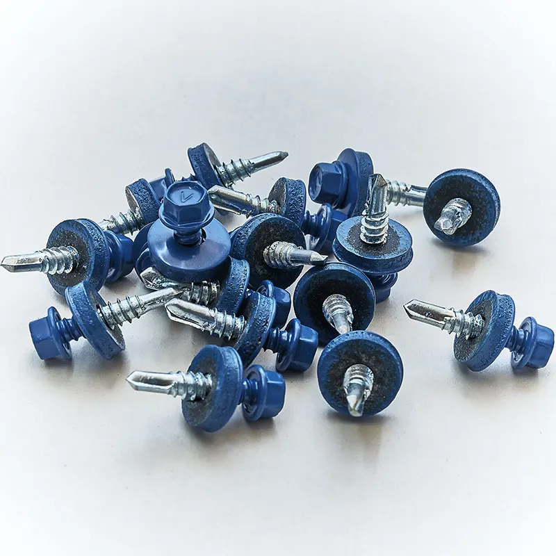 Саморезы для кровли с металлической шайбой с резиновой вставкой из EPDM используются для монтажа кровельных конструкций и материалов. Есть несколько размеров в соответствии с диаметром 4,8 мм; 5,5 мм; 6,3 мм.Таблица размеров приведена ниже.Кровельные саморезы-это своего рода крепеж, состоящий из оцинкованной или окрашенной в RAL цвет шестигранной головки, уплотнительной шайбы EPDM, которая, при монтаже, вулканизированная, таким образом, предотвращает протекание воды в точке бурения и поддерживает ее характеристики при температуре от-55 С до + 150 с. И Резьбовая деталь с наконечником сверла или усиленным сверлом.