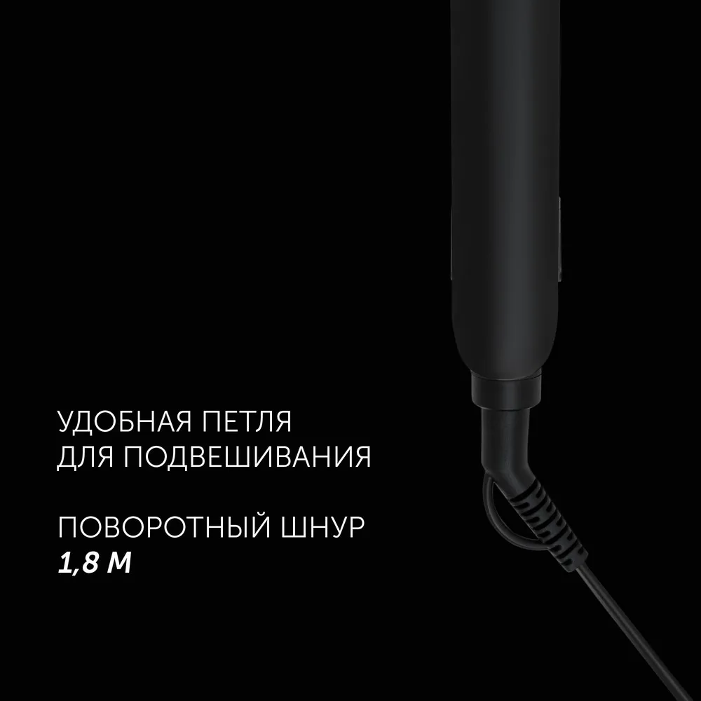 ДЛЯ МОДЕЛИРОВАНИЯ ВОЛОС. Турмалиновое покрытие генерирует ионы кислорода, которые благотворно воздействуют на волосы, снимают статическое напряжение, делая их послушными, здоровыми и естественно блестящими. Турмалиновая ионизация. Размер пластин 45x110 мм. LED терморегулятор. 4 температурных режима: 120-210° C. Шарнирное вращение шнура на 360°. Удобная петля для подвешивания. Переключатель ВКЛ. / ВЫКЛ. Автоматическое отключение через 60 мин. Защита от перегрева. Длина шнура 1,8 м.