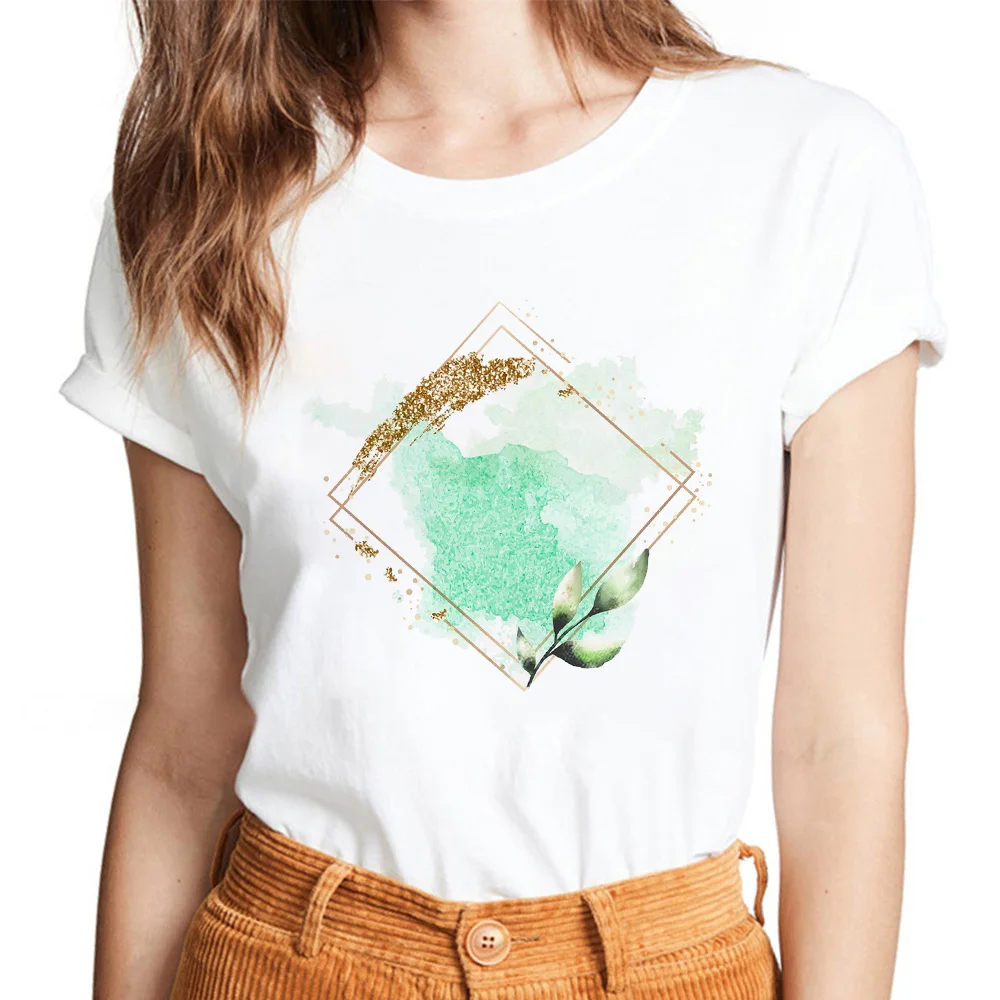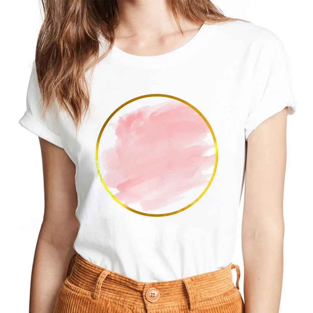 Женская футболка с коротким рукавом, Повседневная футболка с круглы...