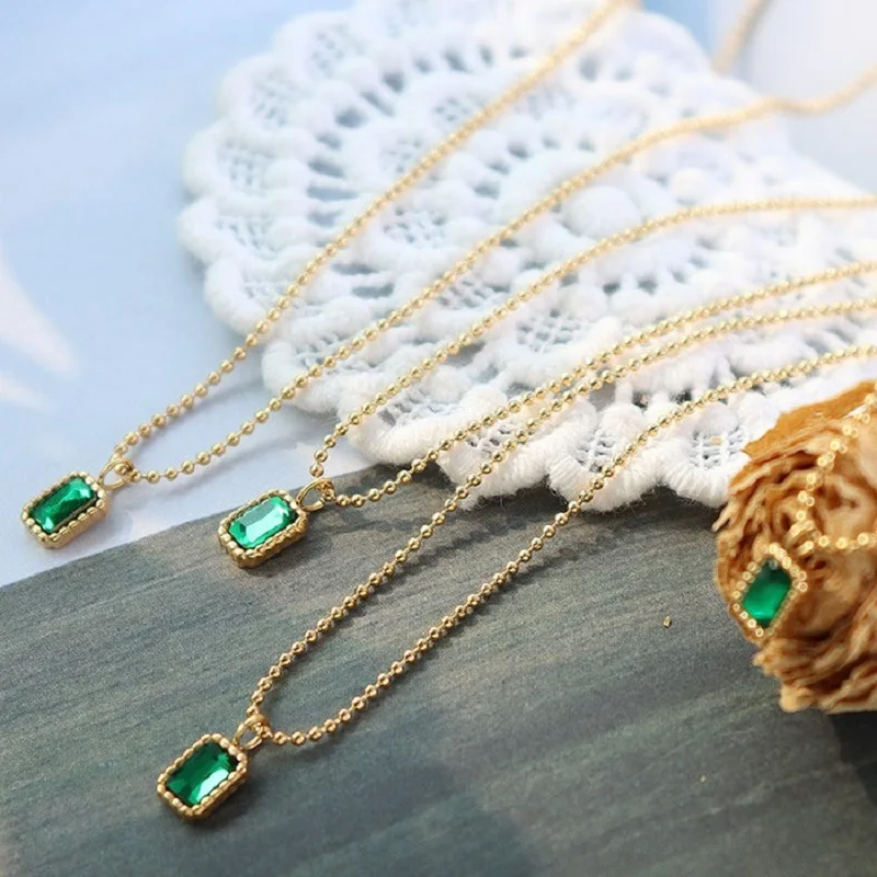 Лидер продаж 2021, микро-комплект из Изумрудного циркония для женщин, ожерелье для девочек с покрытием из 18-каратного золота, цепочка из нержавеющей стали 316L с бусинами, ожерелье