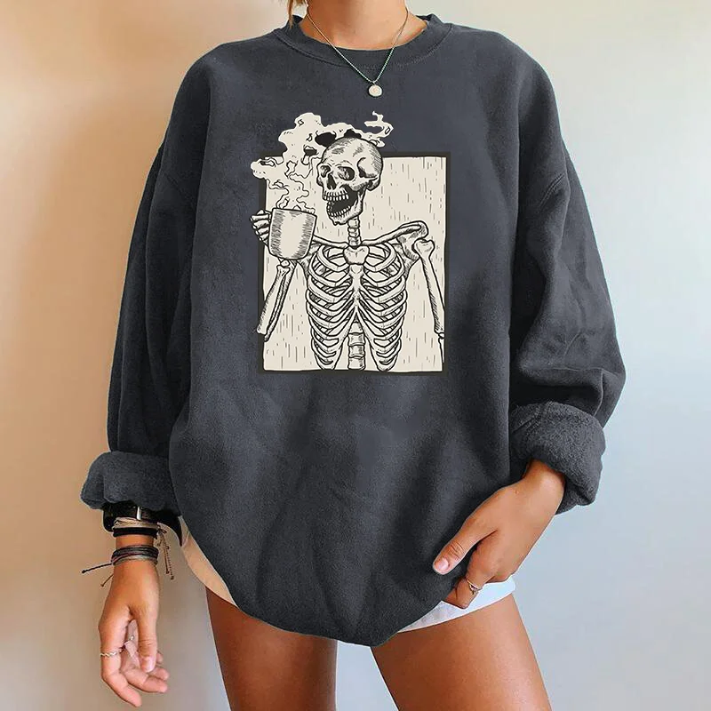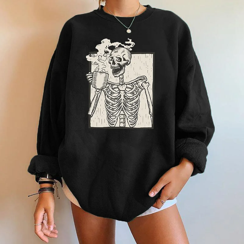 Забавные женские свитшоты с черепом и скелетом для питья чая, пуловеры, свитшоты с длинным рукавом Y2K, топы, одежда, зимняя Женская толстовка
