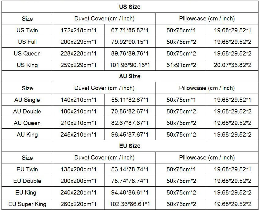 2. Из-за различий в размерах постельных принадлежностей в стране. Перед оформлением заказа убедитесь, что размер вашей кровати соответствует описанию.