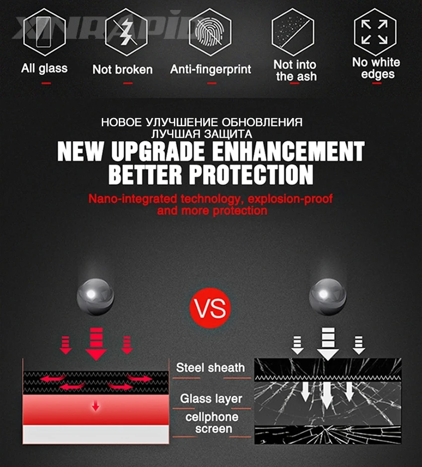Высококачественная защитная пленка из закаленного стекла обеспечивает защиту от царапин, ударов и мелких падений.