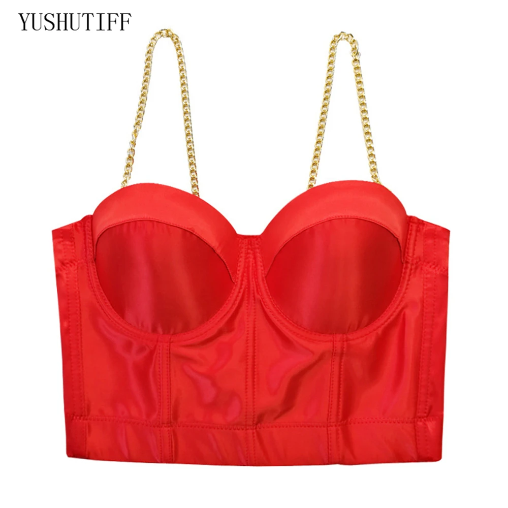 Летний сексуальный бюстгальтер на бретельках со встроенной металлической цепочкой топ на бретельках женский укороченный ночной клубный корсет для вечерние укороченный топ бюстье пуш-ап 8230