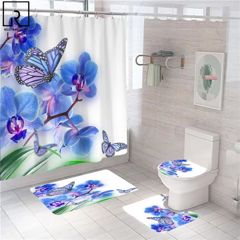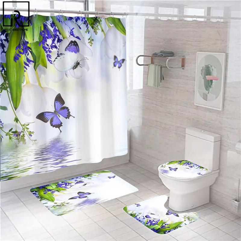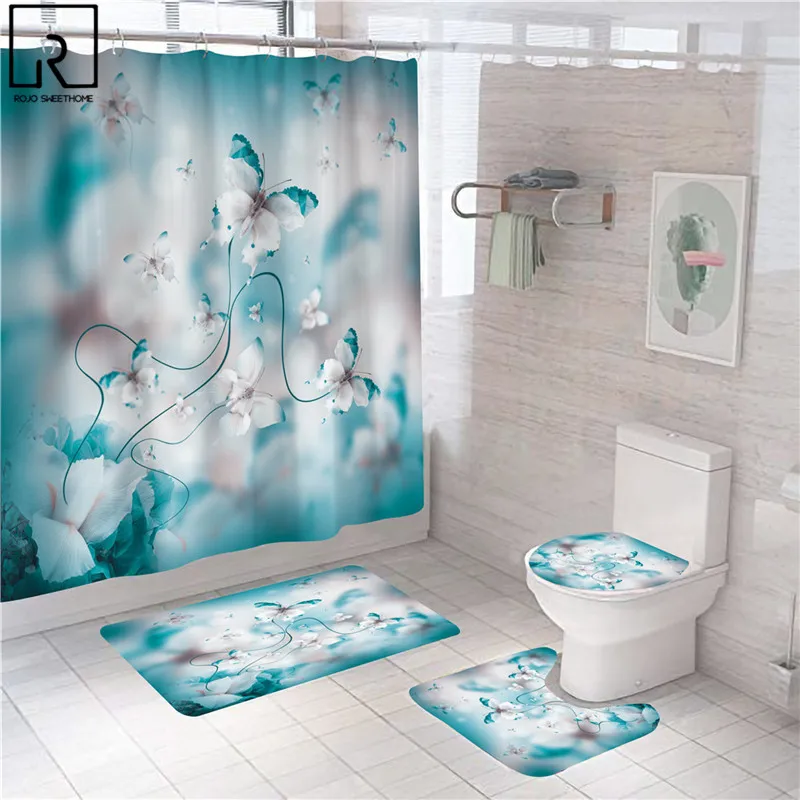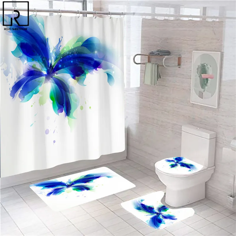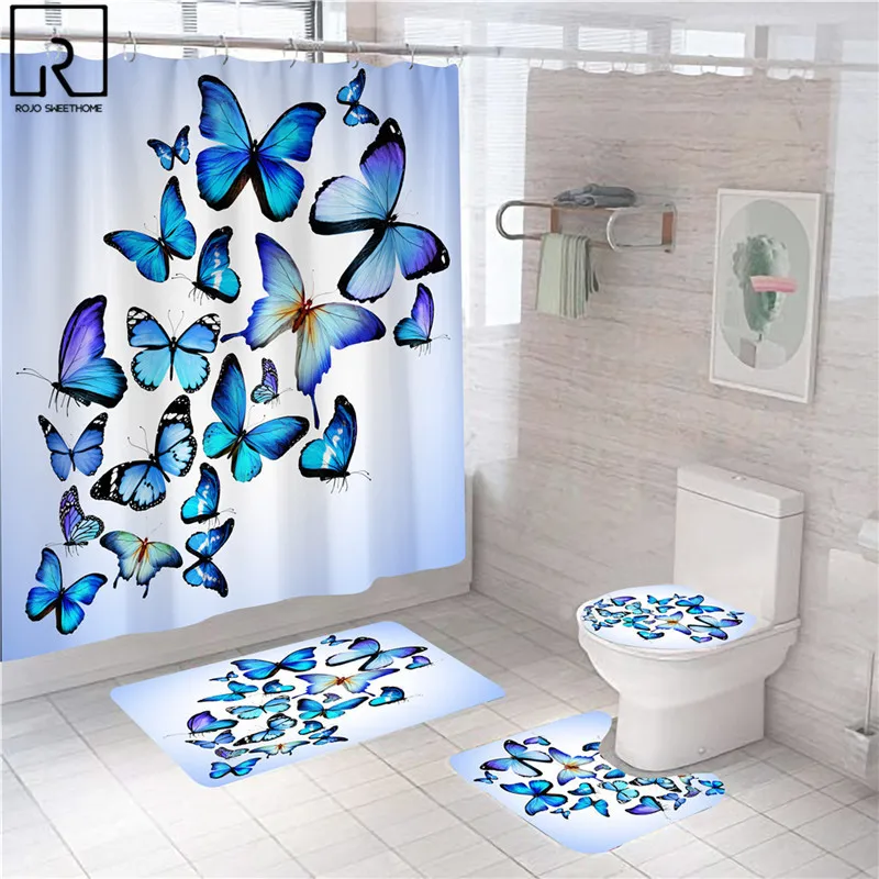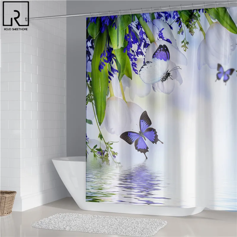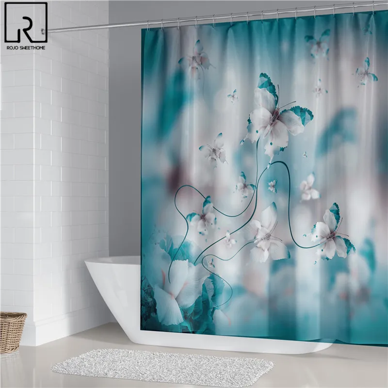 Элегантные занавески для ванной с большими бабочками, белая занавеска для душа, полиэстеровый тканевый коврик для ванной, водонепроницаемый домашний корейский Декор