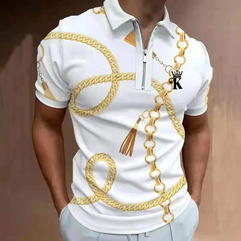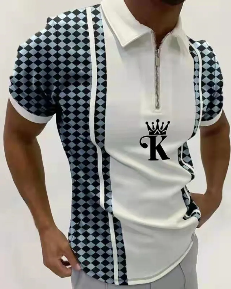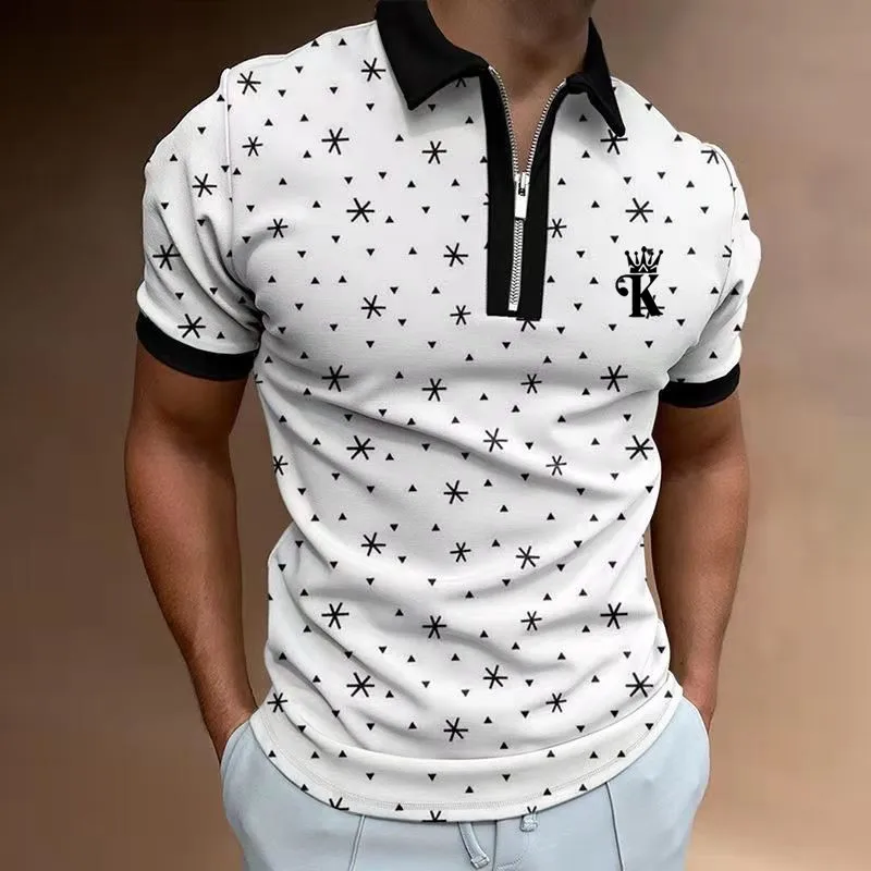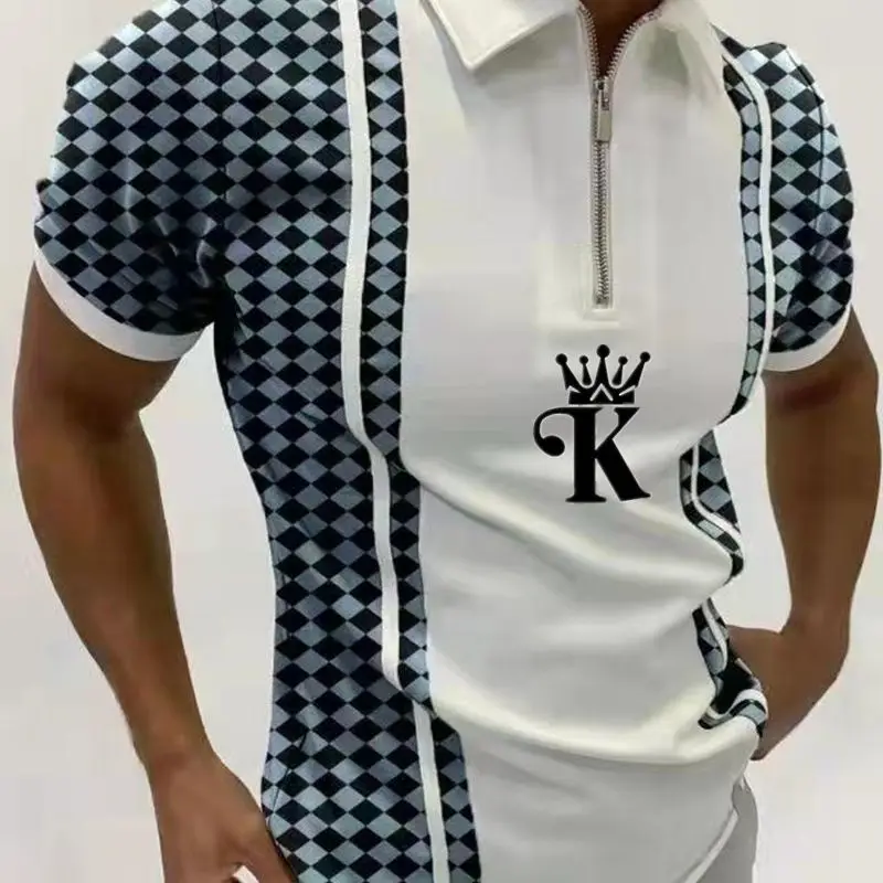 Мужская рубашка-поло с коротким рукавом, в полоску