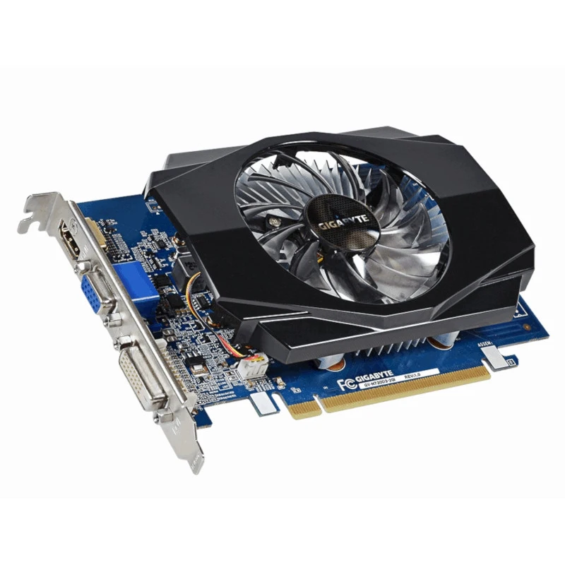 GigaByte GeForce GT 730 - видеокарта от GigaByte, построенная на базе чипсета NVIDIA GeForce GT 730. Видеокарты от этого производителя известны своей стабильностью и надежностью работы. Эта модель полностью совместима с DirectX 12 и имеет низкое время отклика. . Адаптер имеет высокоскоростную видеопамять GDDR5. Помимо высокой производительности, модель располагает повышенной надежностью. GigaByte построила данный графический ускоритель в соответствии с фирменной концепцией Ultra Durable 2. Тем самым, он обладает низкой температурой при работе, малой потерей мощности и длительным сроком службы за счет применения исключительно твердотельных конденсаторов. Эффективность охлаждения достигается благодаря применению большого кулера, специально разработанного для этой модели GigaByte. В дополнение к этому, модель оснащена HDMI разъемом с позолоченными контактами, что обеспечит идеальное качество передачи сигнала. GigaByte GeForce GT 730 - замечательная видеокарта, отличающаяся высокой производительностью и надежностью, станет отличным решением как для дома, так и для офиса. Техническое описание Графическая обработка GeForce GT 730 Базовые частоты 902 МГц Технологическая технология 28 нм Частота памяти 1800 МГц Размер памяти 2048 МБ Тип памяти DDR3 Шина памяти 64 бит Шина для карт PCI-E 2.0 Цифровое максимальное разрешение 4096 X 2160 (через разъем HDMI) Аналоговое максимальное разрешение 2048 x 1536 Multi-View 3 Размер карты H = 27 L = 167 Вт = 115 мм Форм фактор ATX DirectX 12 OpenGL 4.4 Рекомендуемый блок питания от 300 Вт
