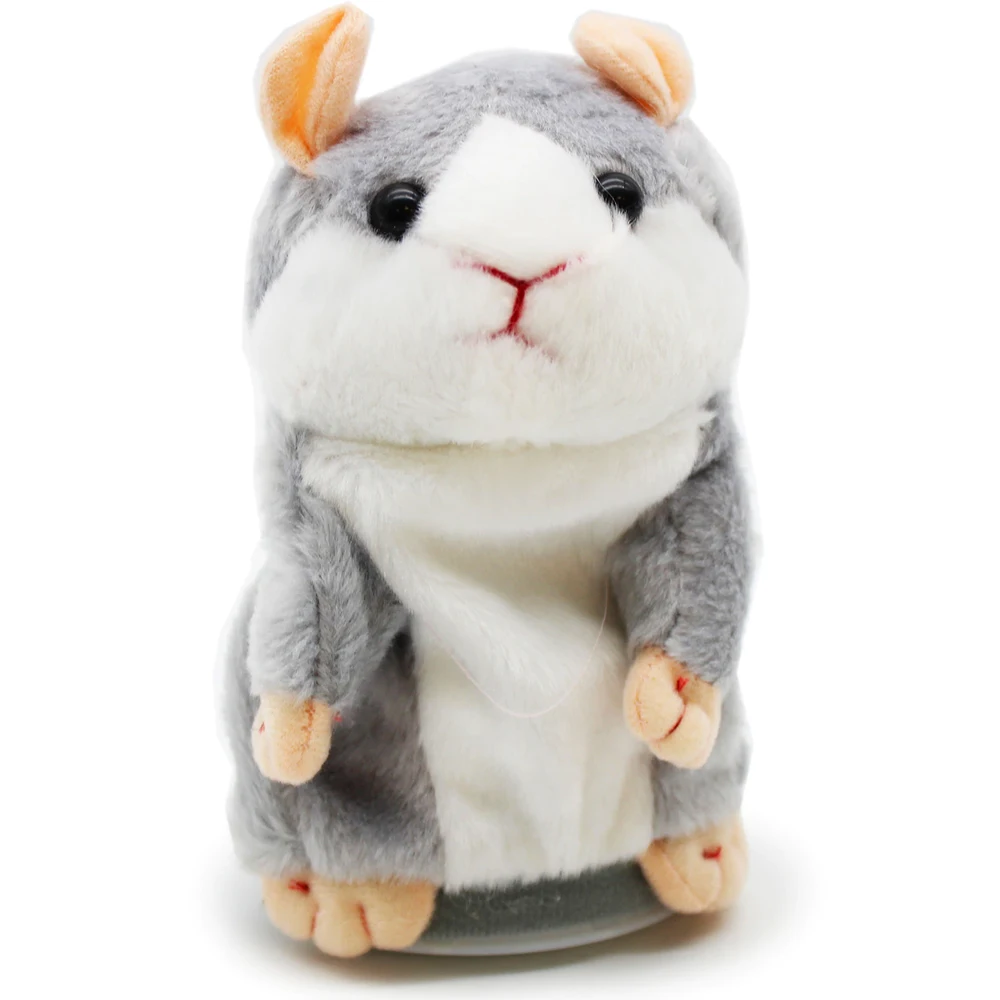 Говорящий хомяк повторюшка плюшевая мягкая игрушка повторяющая речь игра питомец подарок для детей и взрослых Серый