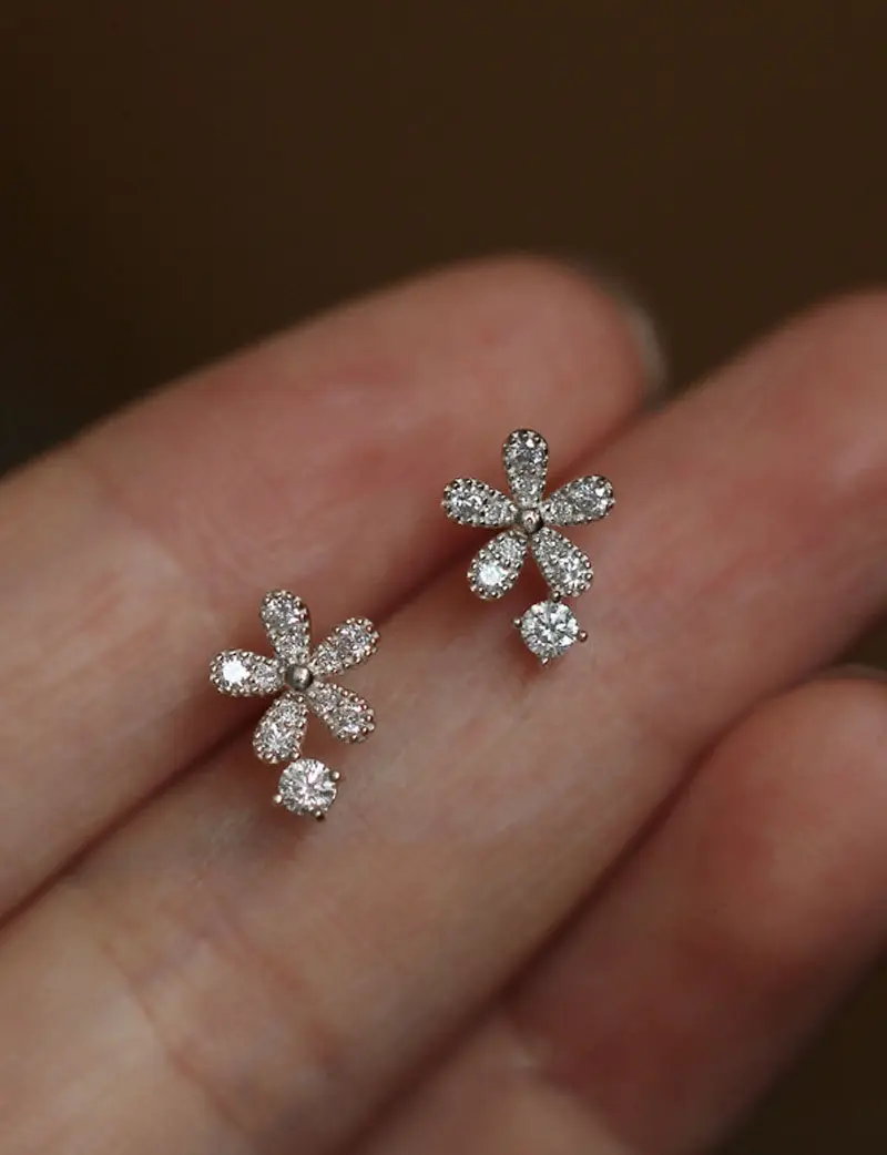 Женские серьги-гвоздики из серебра 925 пробы, с кристаллами