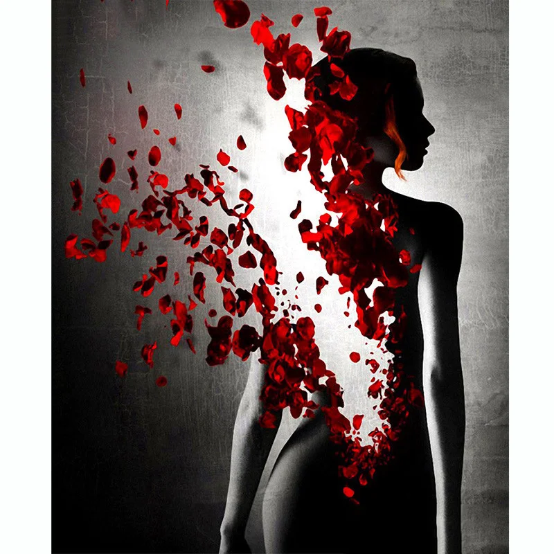 Полноразмерная Алмазная вышивка с круглыми стразами, красная и черн...