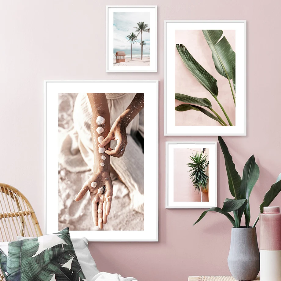 Песок, падающий, собирает ракушки, пальмовое дерево, спокойный пляж...