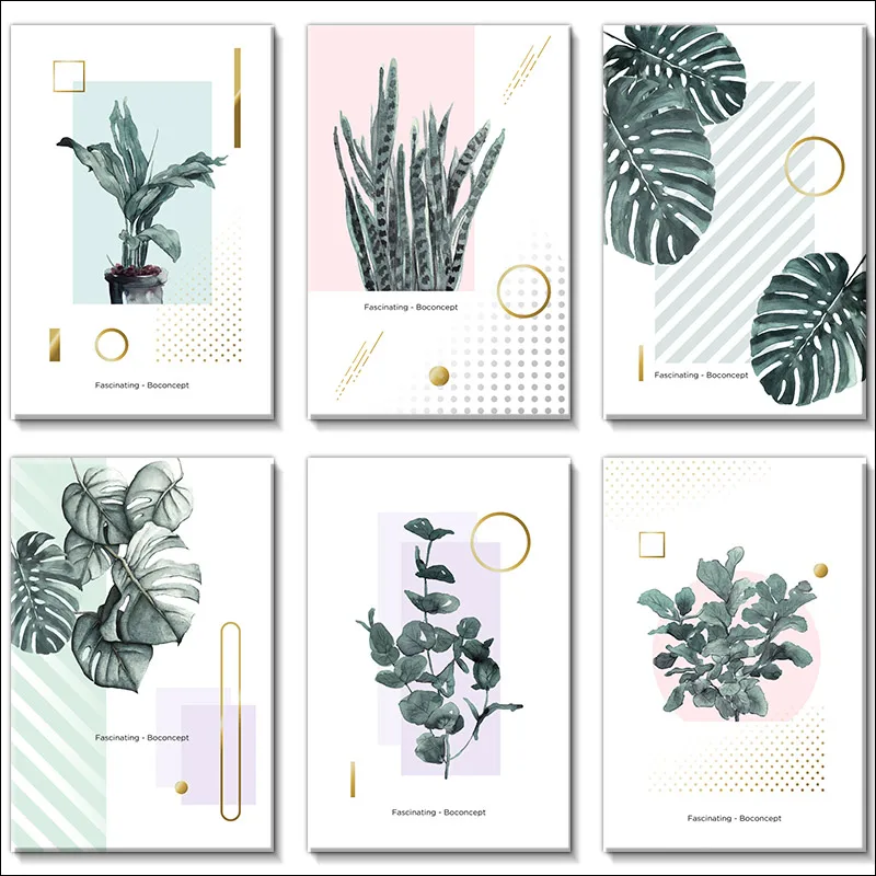 Плакат с зелеными растениями, современная простая Картина на холсте...