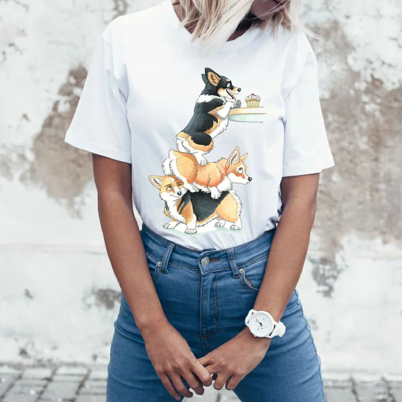 Смешная умная футболка AMEITTE с принтом Кража корги, Женские повседневные топы с милой собакой, милые белые футболки для девочек