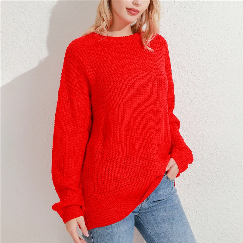 Свитер женский оверсайз с длинным рукавом, Осень-зима, 2021