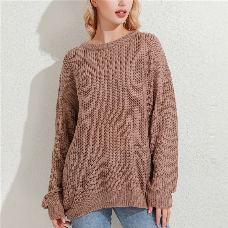 Женский винтажный Свитер оверсайз с круглым вырезом и длинным рукавом