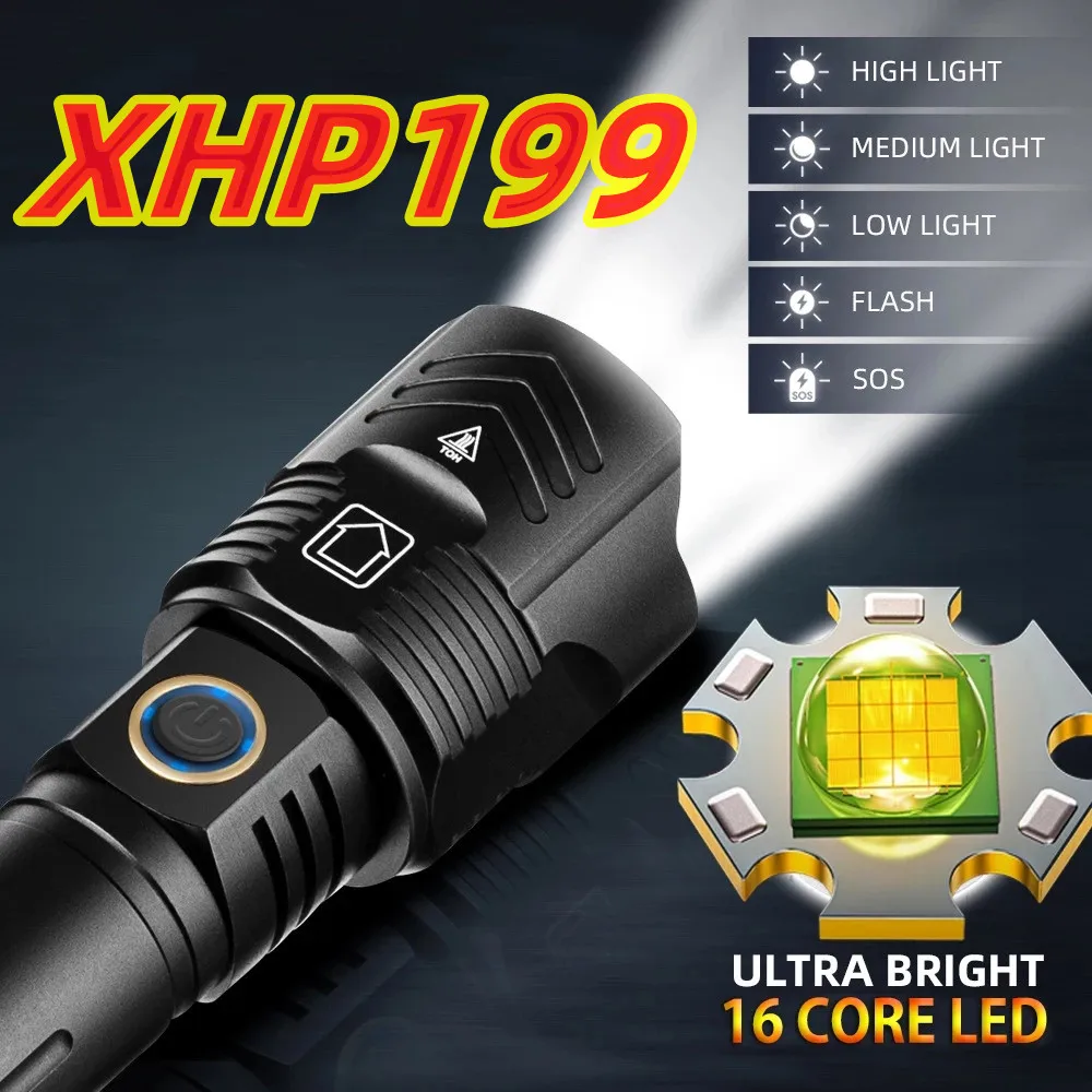 Новинка, тактический светодиодный фонарик XHP199, перезаряжаемый мощный яркий фонарик светильник hp160, мощсветильник светодиодный фонарик s XHP90, фонарь для кемпинга
