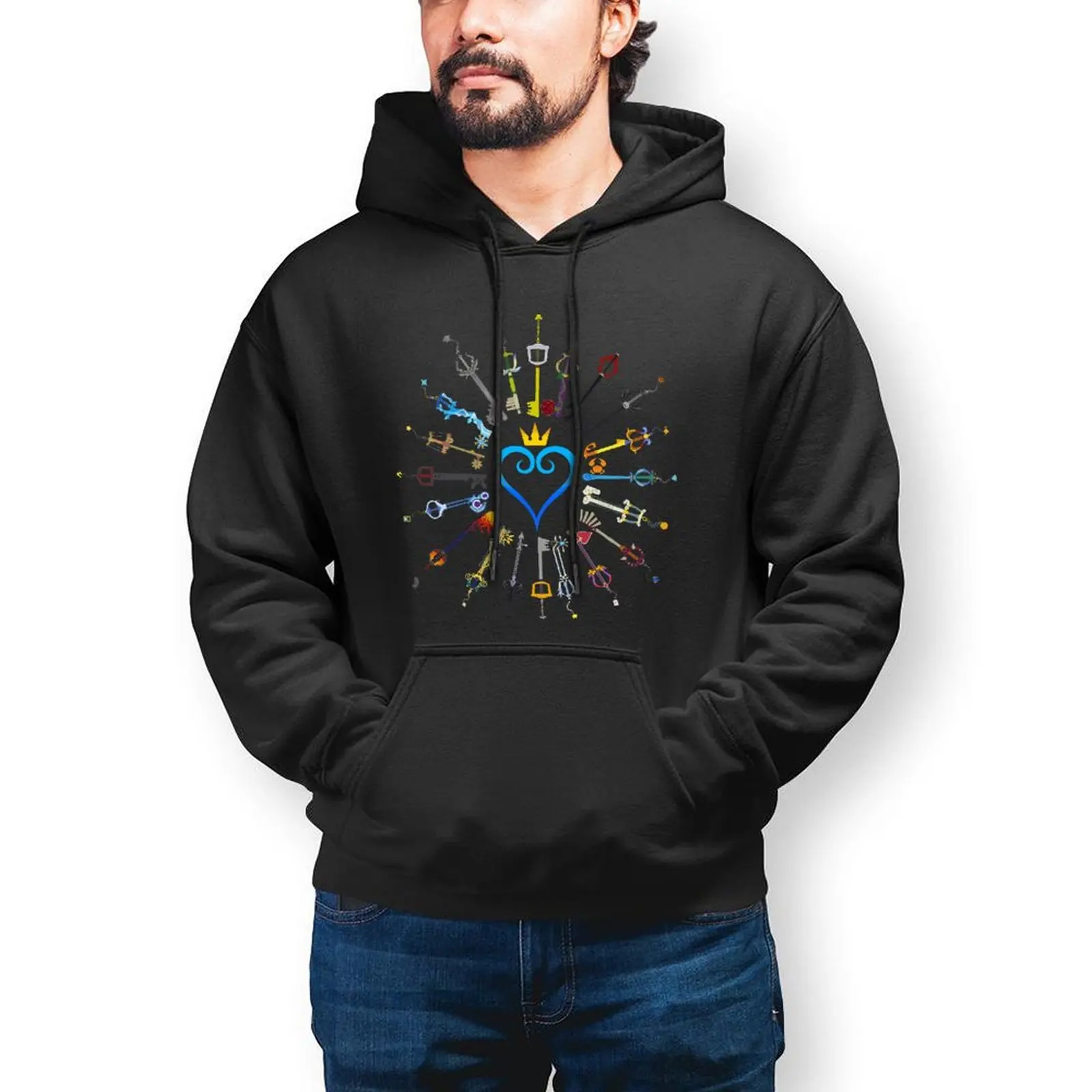 Зимняя хлопковая толстовка Kingdom толстовка с сердцами, красивая уличная одежда, длинный пуловер, Толстовка для мужчин, большая