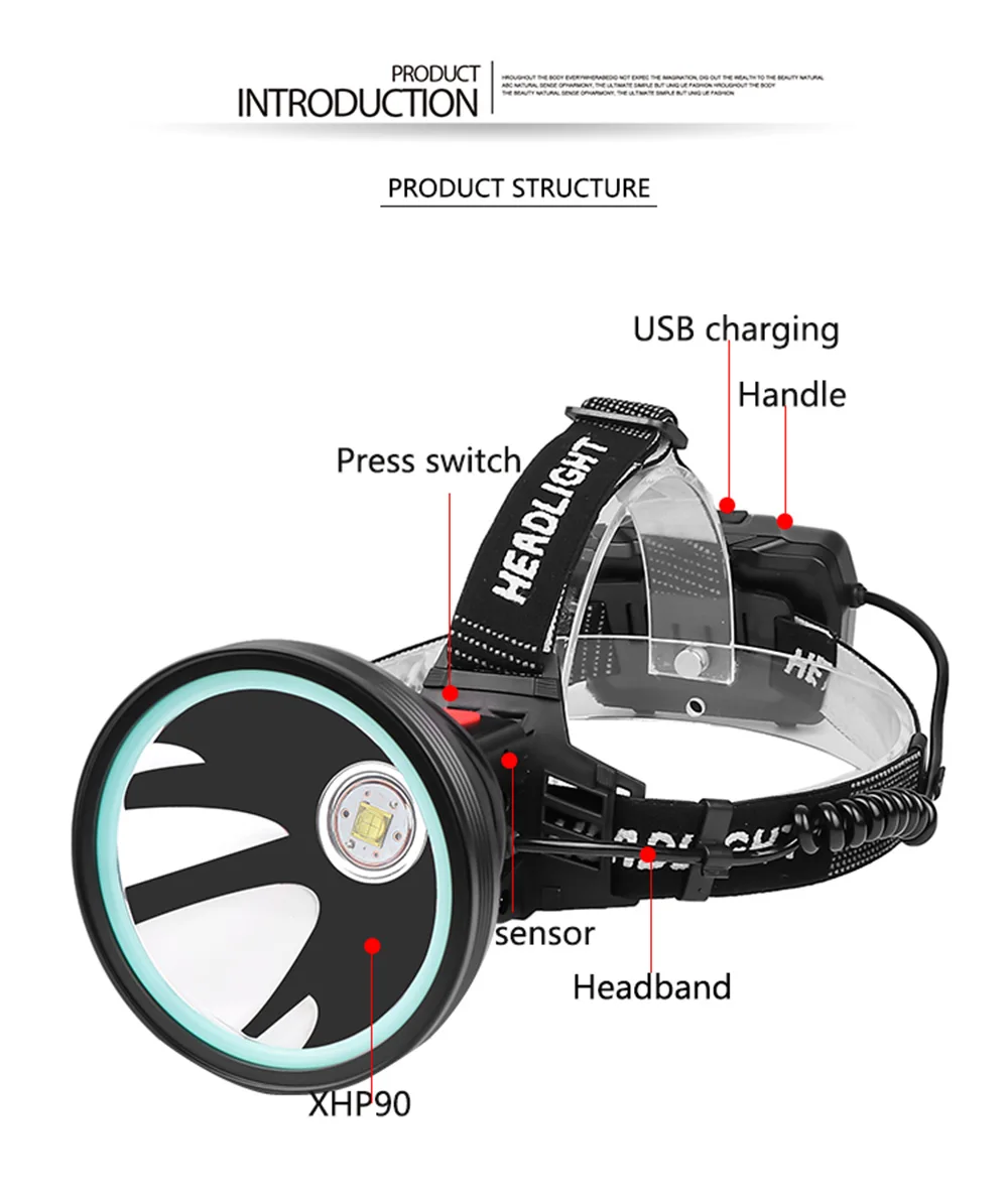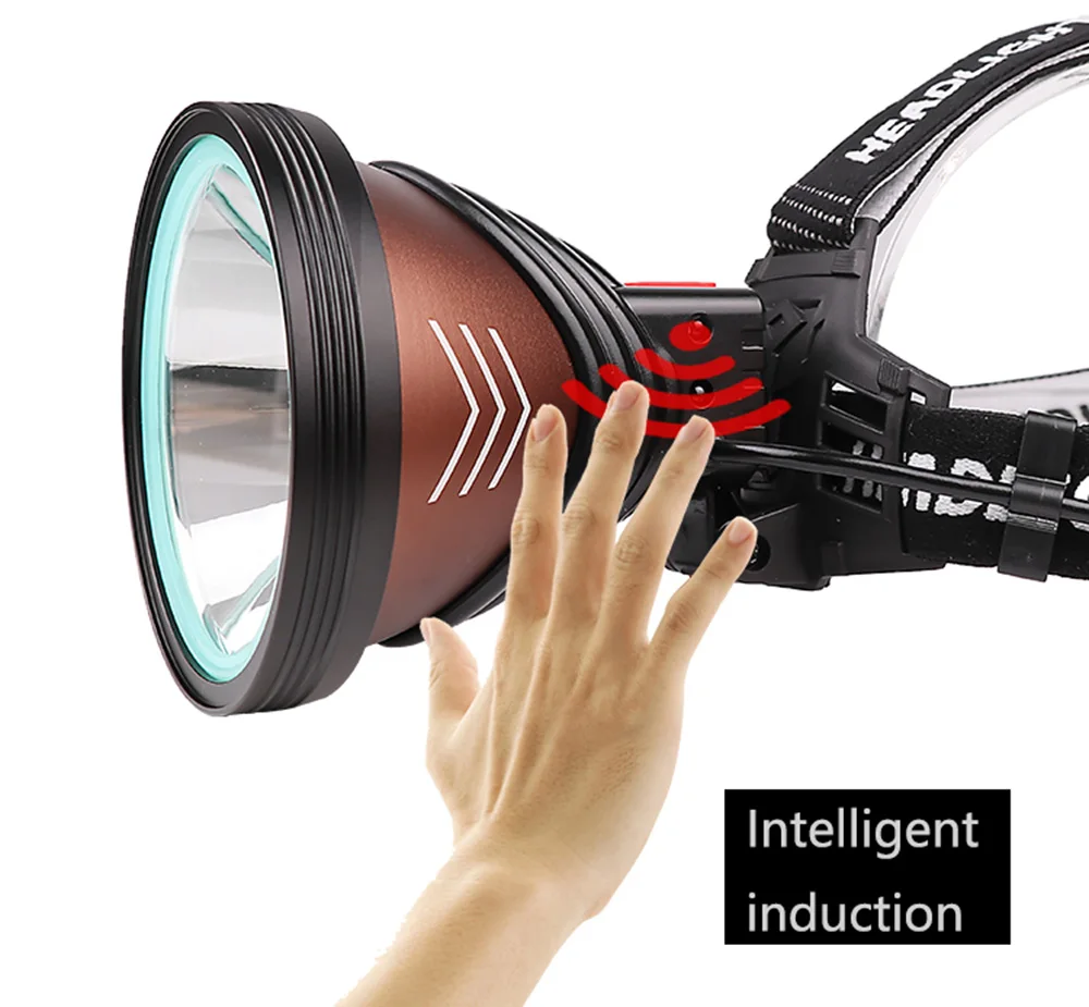 Налобный фонарь, перезаряжаемый Мощный светодиодный налобный фонарь с литиевым аккумулятором 18650, налобный фонарь с датчиком, налобный фонарь, Рабочая лампа